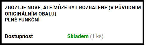 Veškeré ostatní zboží, kde není uvedeno, že se jedná o rozbalené, je nové se standardní zárukou 24 měsíců.