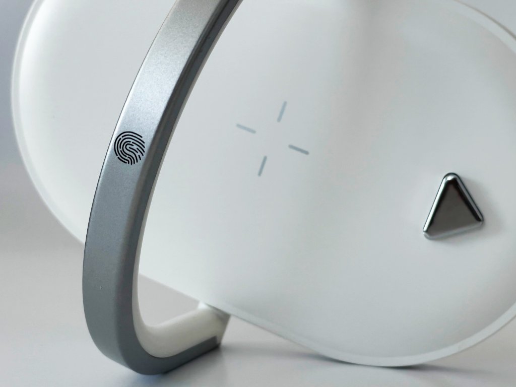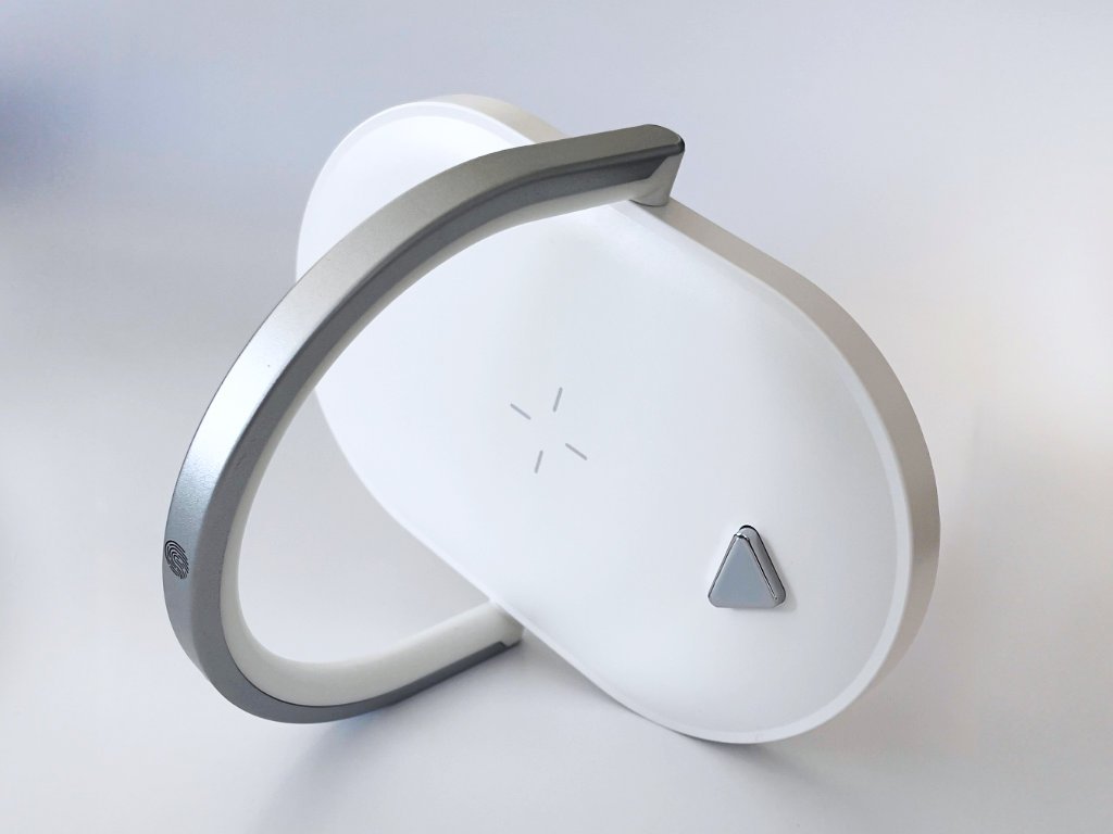 Lampa, stojan na telefon a bezdrátová nabíječka s dotykovým zapínáním lampičky s režimem tří intenzit svítivosti.