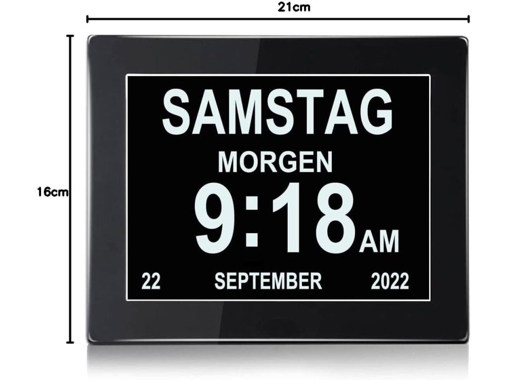SENXINGYAN digitální budík je speciálně navržený pro seniory nebo osoby se zhoršenou pamětí. Díky velkému 8" displeji zobrazuje čas, den, měsíc i datum přehledně a bez zkratek, takže je snadno čitelný i z větší vzdálenosti.