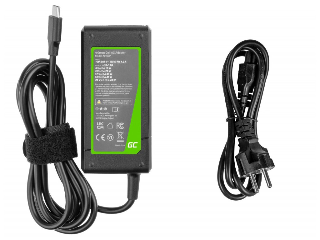 Nabíječka / AC Adaptér / Napájení Green Cell USB-C 45W pro notebooky, tablety a telefony