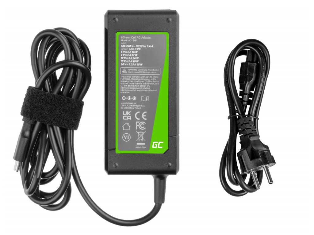 Green Cell USB-C 65W Nabíječka/Adaptér pro Laptopy, Tablety a mobilní telefony