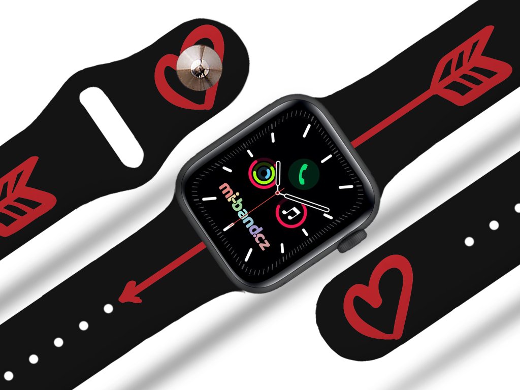Potištěný náhradní řemínek pro Apple Watch s designem Amorův šíp. Láska protnula dvě srdce, která se milují.