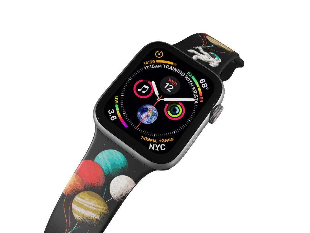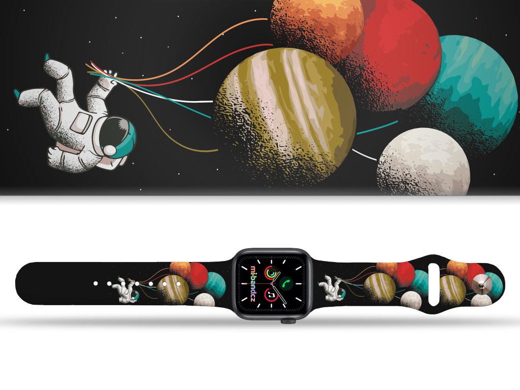 Potištěný náhradní řemínek pro Apple Watch s designem Balónky z planet. Vydej se na vesmírný trip. Každá planeta je najednou balónkem, který pevně držíš v hrsti. Nezní tato fantazie úžasně? Podívej na náramek pro Apple Watch.