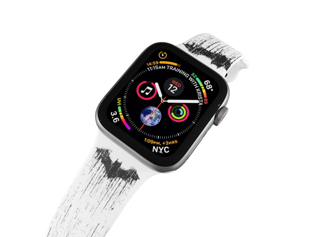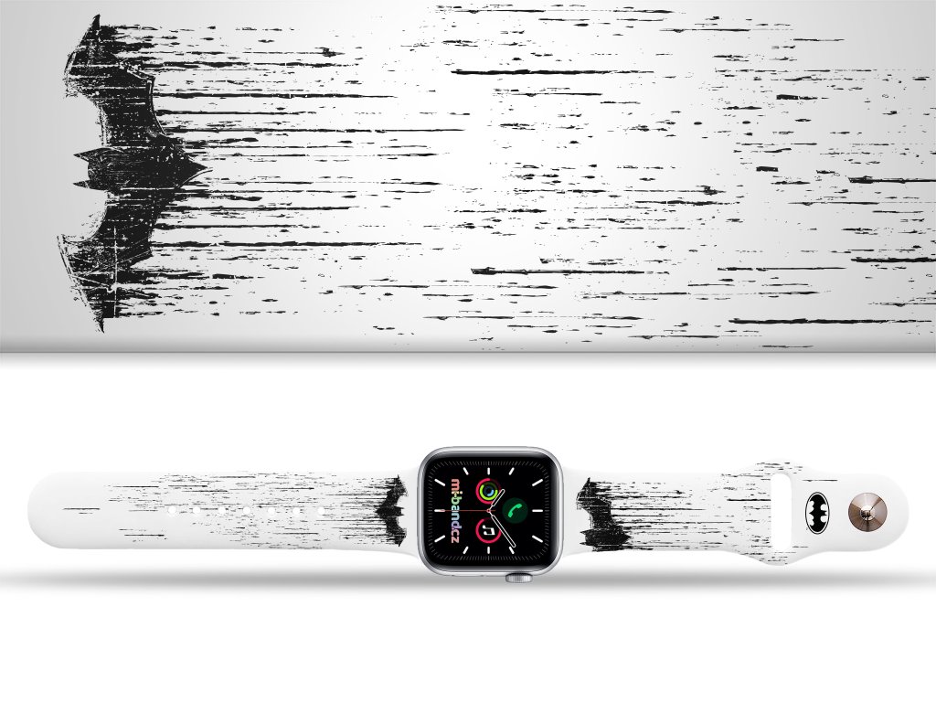 Potištěný náhradní řemínek pro Apple Watch s designem Batman - Černo-bílý znak. Náhradní řemínek s černým potiskem znaku z DC komiksu Batman. Nenápadný pásek k hodinkám, který řekne za vás na které straně stojíte.