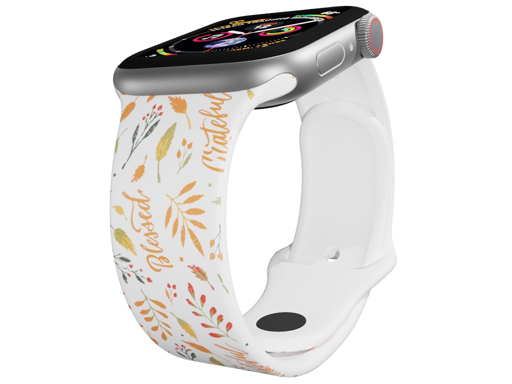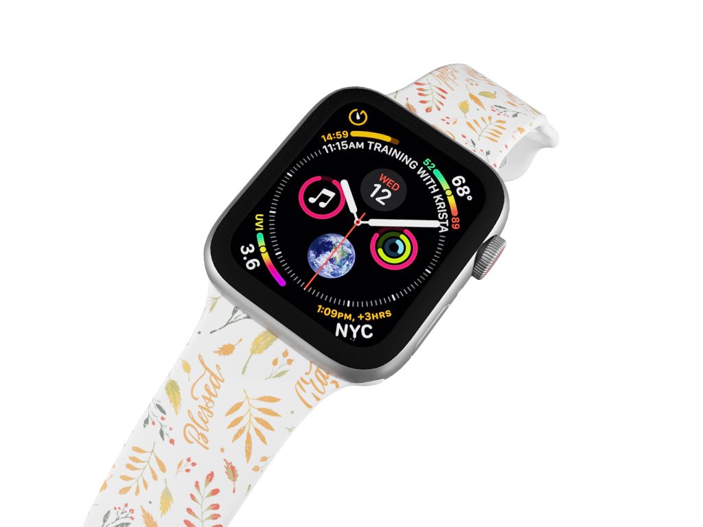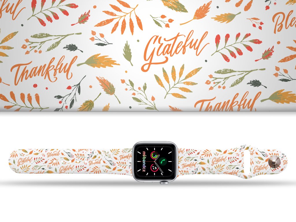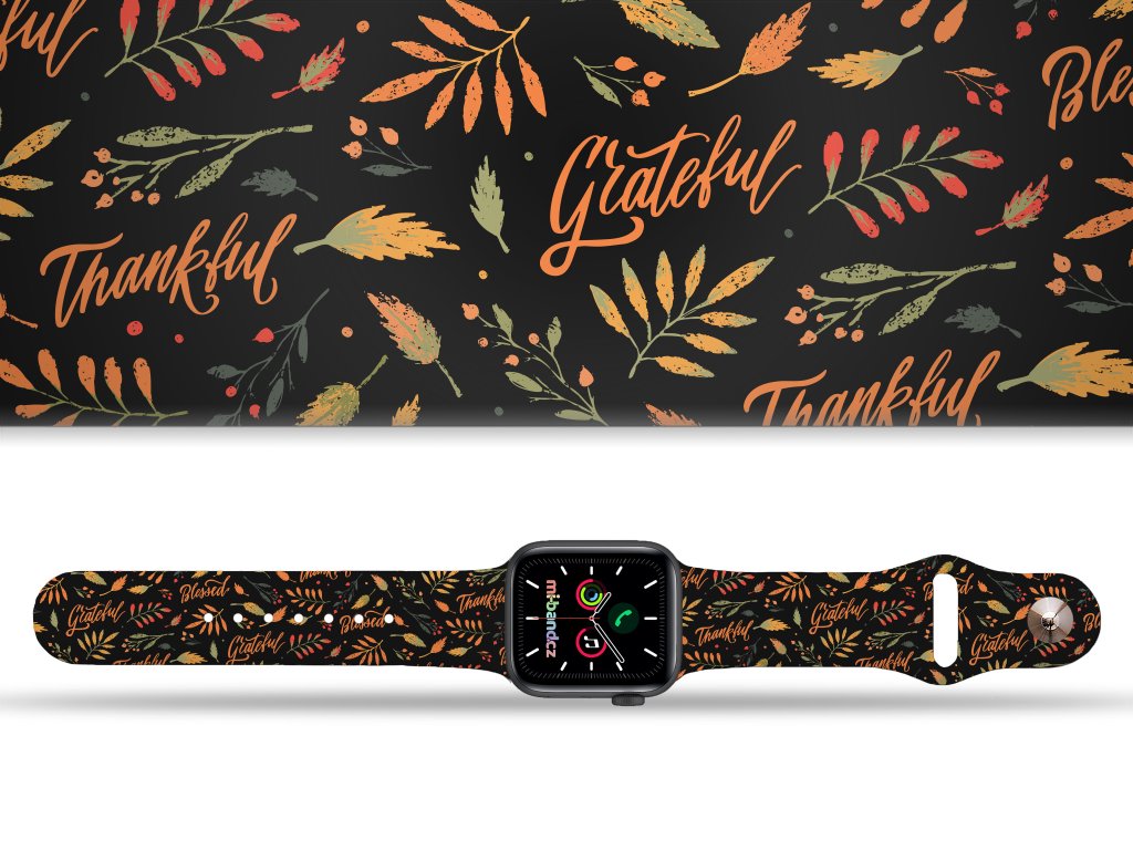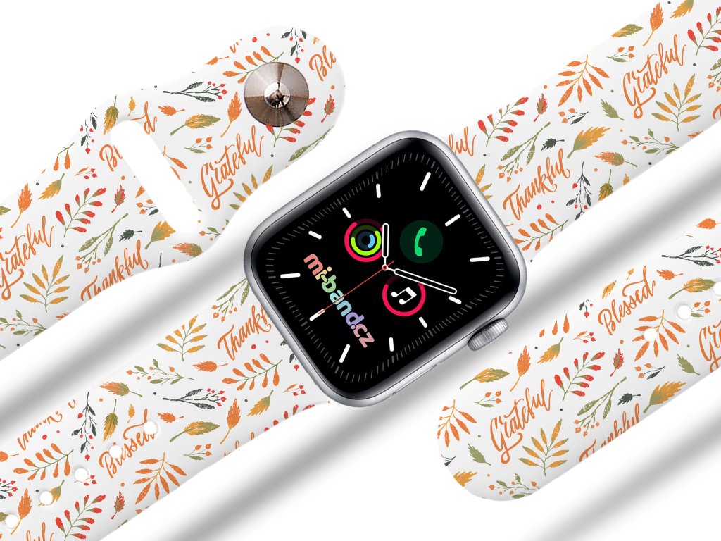 Potištěný náhradní řemínek pro Apple Watch s designem Díkuvzdání. Vzdejme díky tomuto dni. Barvy podzimu, sluníčko ještě hřeje a slavnostní večeře už se chystá na stůl.