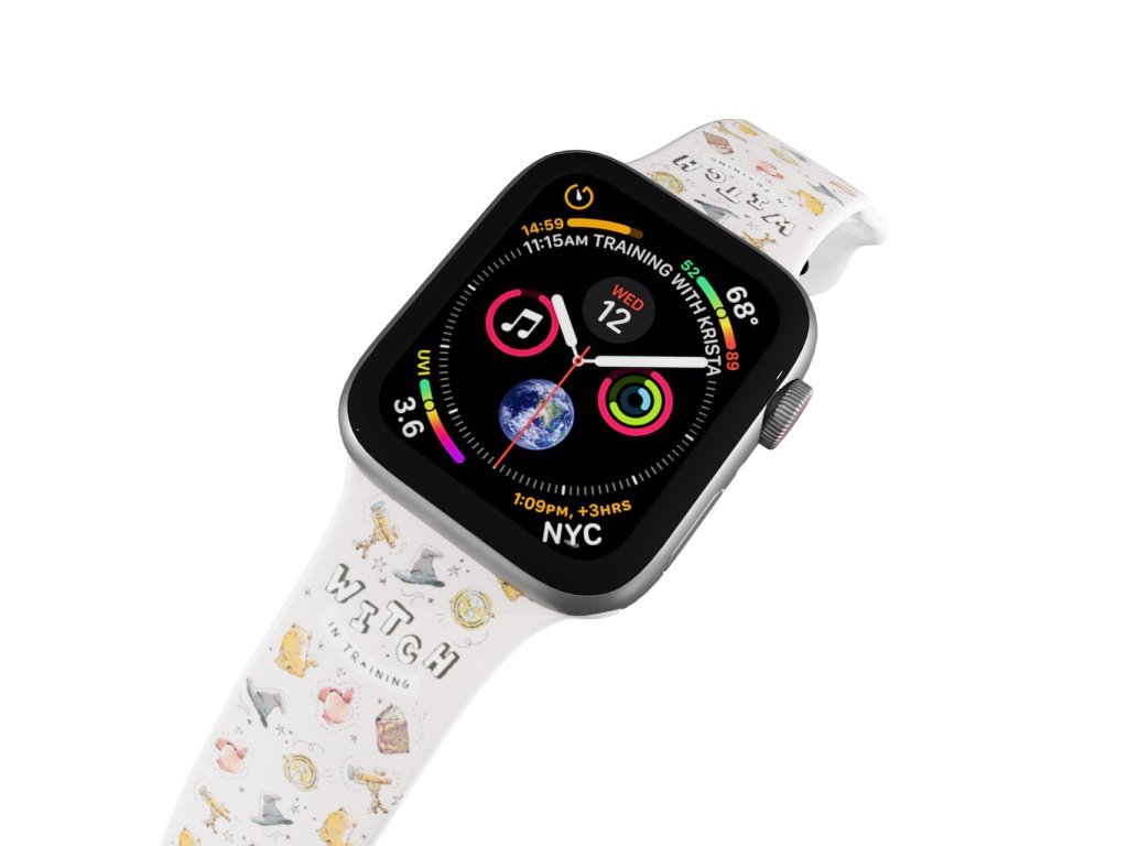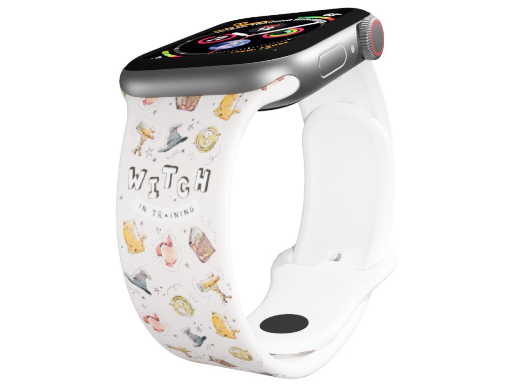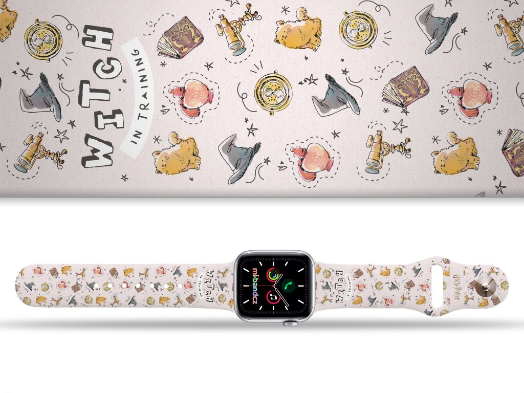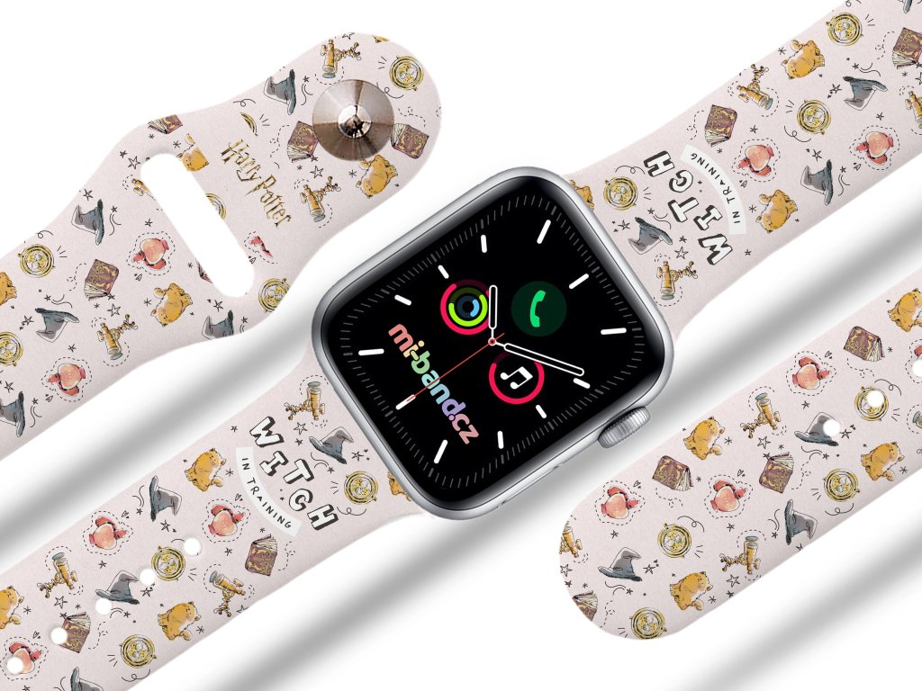 Potištěný náhradní řemínek pro Apple Watch s designem Harry Potter - Čarodějka v zácviku. Vše pro tu správnou čarodějku jako je Hermiona Grangerová. Kocour, kotlík, obraceč času a další.