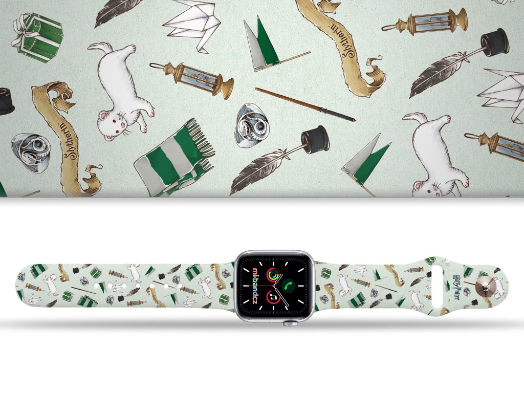 Potištěný náhradní řemínek pro Apple Watch s designem Harry Potter - Draco Malfoy. Pásek s potiskem typickým prvků pro Draca Molfoye z Bradavické školy čar a kouzel. Jste milovníky Harryho nebo se připojíte na stranu temna k Dracovi?