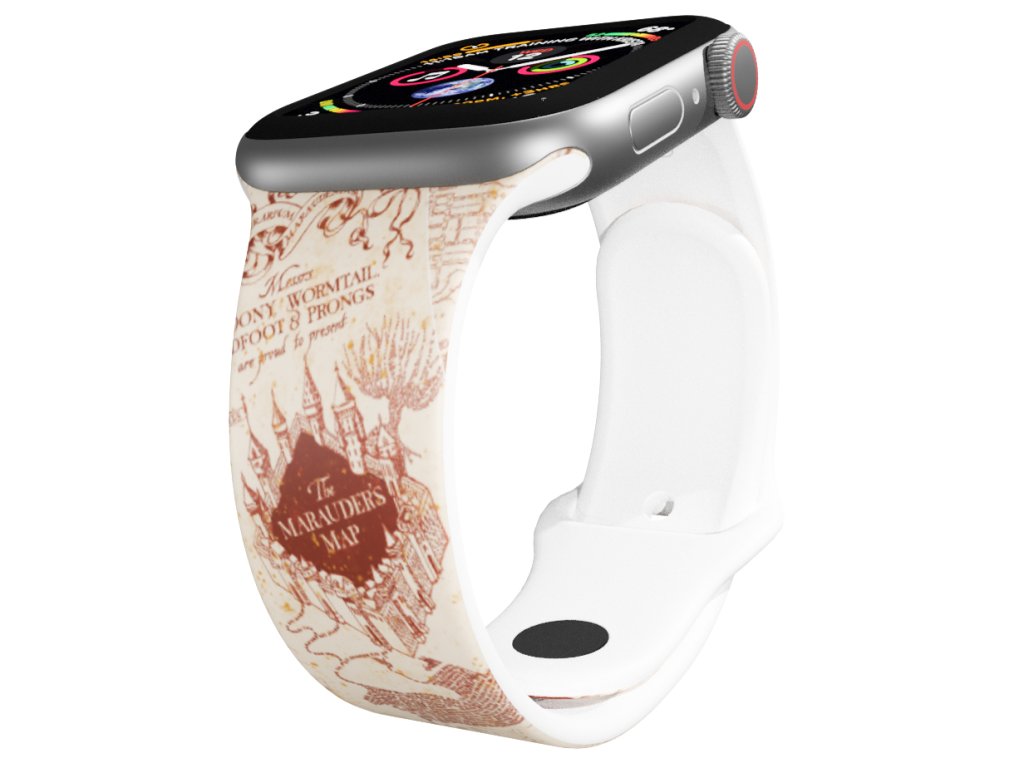 Potištěný náhradní řemínek pro Apple Watch s designem Harry Potter - Pobertův plánek. ,,Slavnostně přísahám, že jsem připraven ke každé špatnosti." Odhalte tajemství Pobertova plánku a měj kousek i na svých hodinkách. Znáte tajnou formulku? ,,Neplecha ukončena."