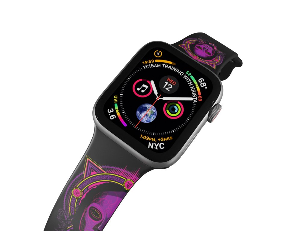 Potištěný náhradní řemínek pro Apple Watch s designem Harry Potter - Smrtijed. Pásek s potiskem Smrtijeda. Smrtijedi tvoří Voldemortův nejužší kruh a pomáhají mu ovládnout kouzelnický svět.