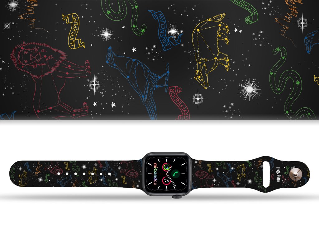 Potištěný náhradní řemínek pro Apple Watch s designem Harry Potter - Souhvězdí kolejí 2. Která kolej bude ta vaše?