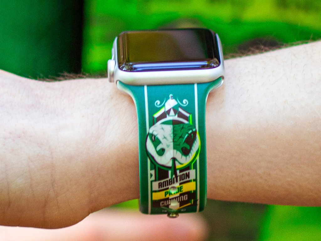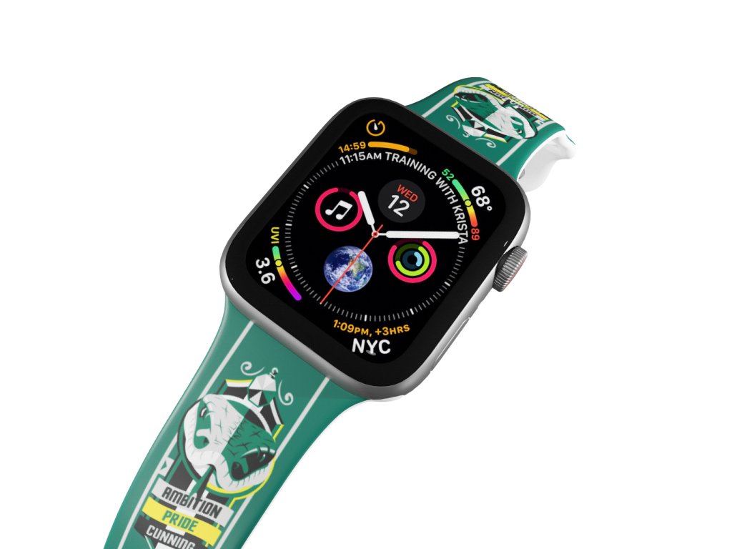 Potištěný náhradní řemínek pro Apple Watch s designem Harry Potter - Zmijozel. Přidáte se ke koleji "zlých", která je plná ambiciózních, ctižádostivých a loajálních čarodějů?
