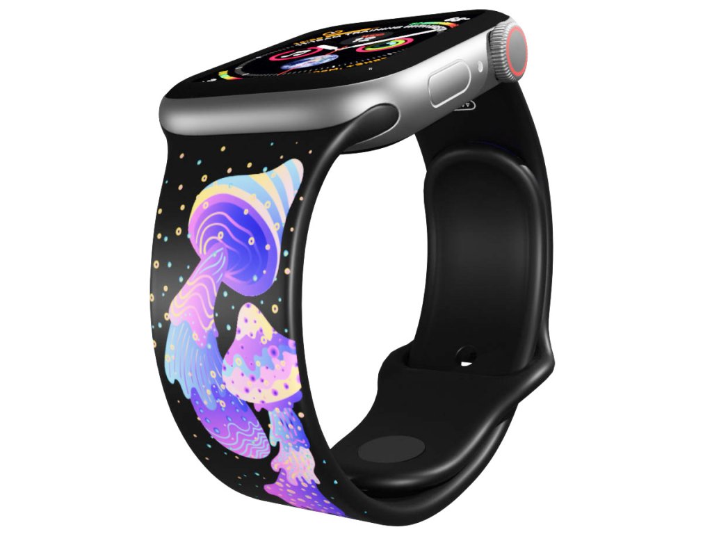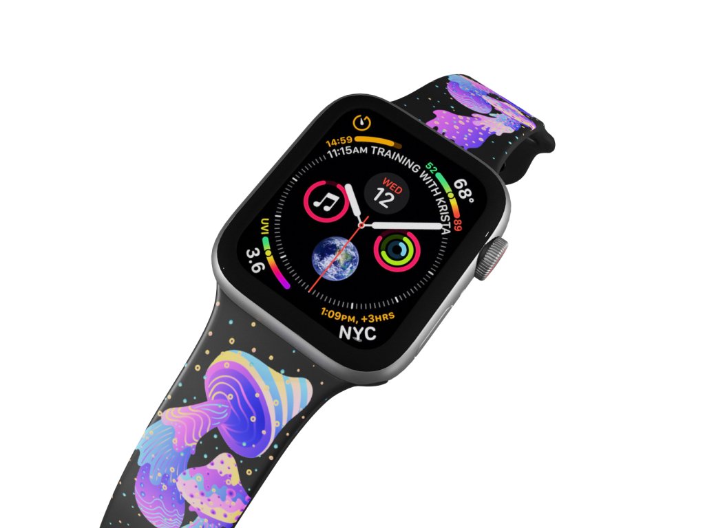 Potištěný náhradní řemínek pro Apple Watch s designem Houbičky. Jak moc mohou být houby magické? Pokud se zrovna blýskají mnoha odstíny, rozhodně se dá mluvit o nějakém kouzelném účinku. Zkus náramek pro Apple Watch.
