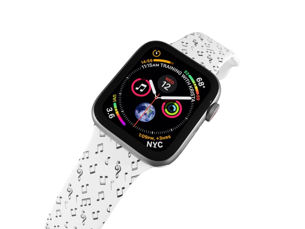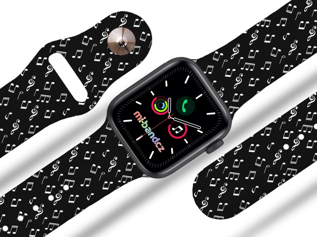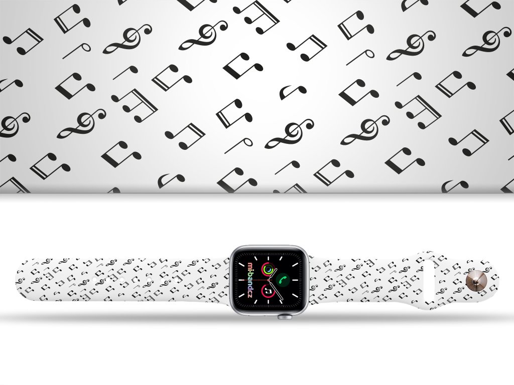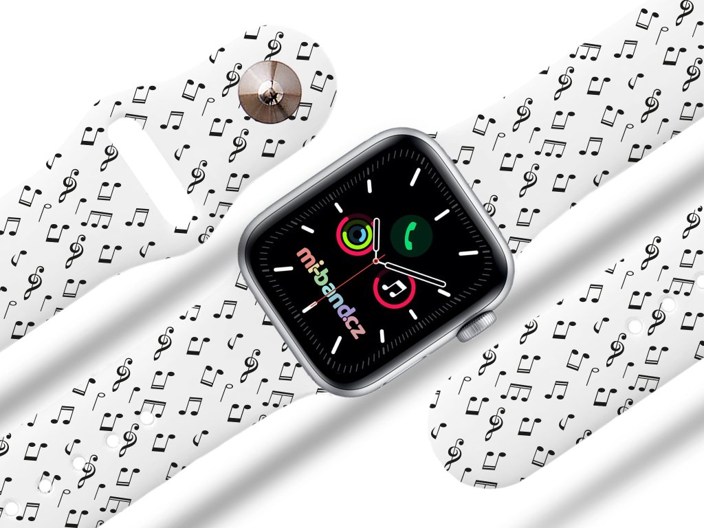 Potištěný náhradní řemínek pro Apple Watch s designem Hudební noty. To pravé pro skladatele i milovníky hudby. Rozezněte tóny i vás pásek u hodinek.