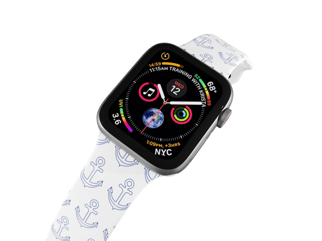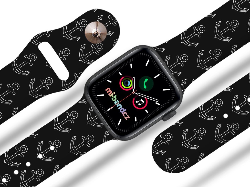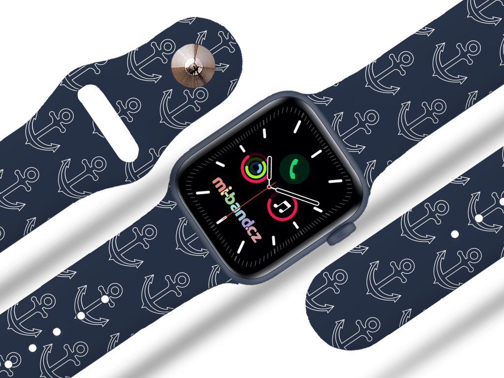 Potištěný náhradní řemínek pro Apple Watch s designem Kotvičky. Zakotvěte v přístavu jistoty, lásky a pochopení.