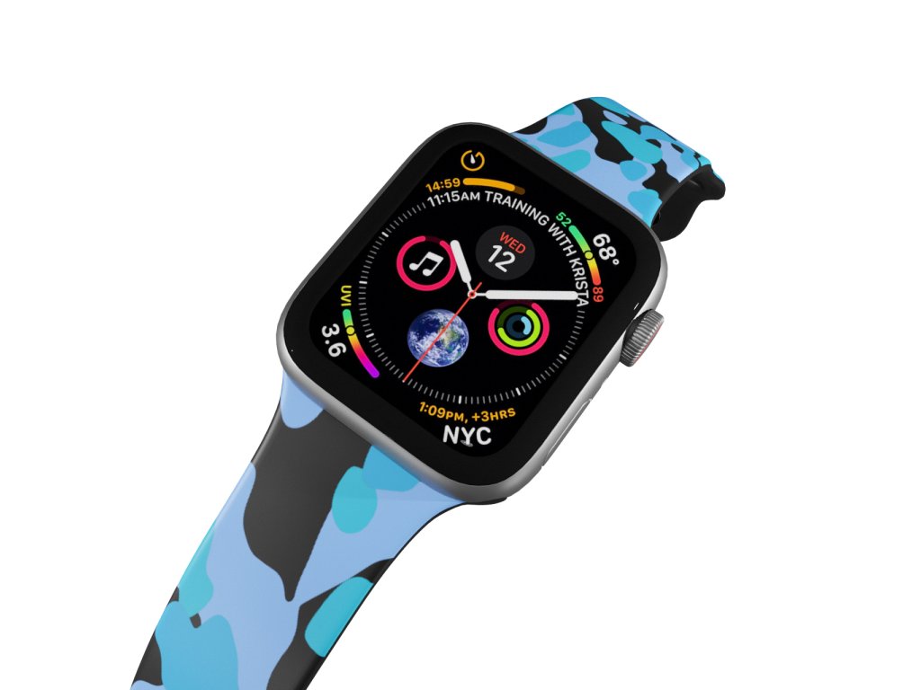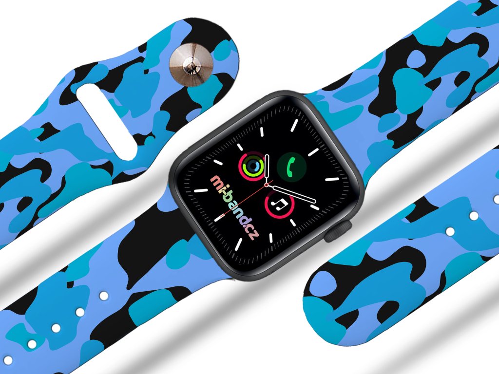 Potištěný náhradní řemínek pro Apple Watch s designem Maskáč modrý. Zamaskujte dokonale i svůj pásek na hodinkách ve vodním světě.