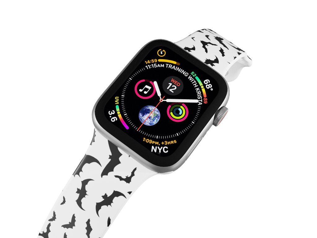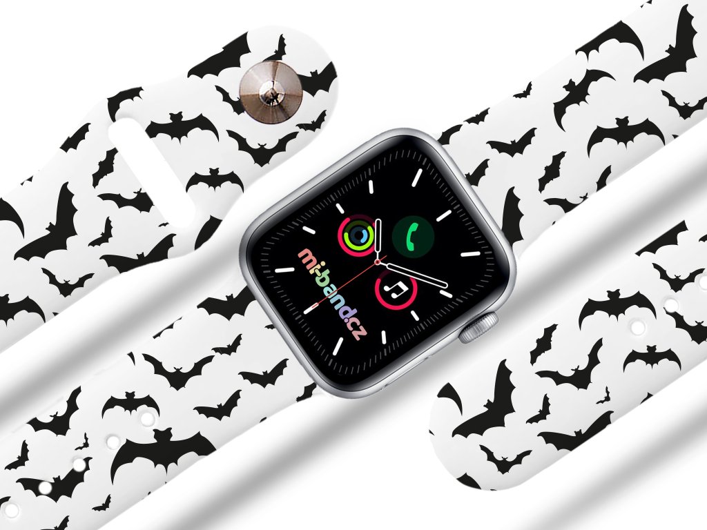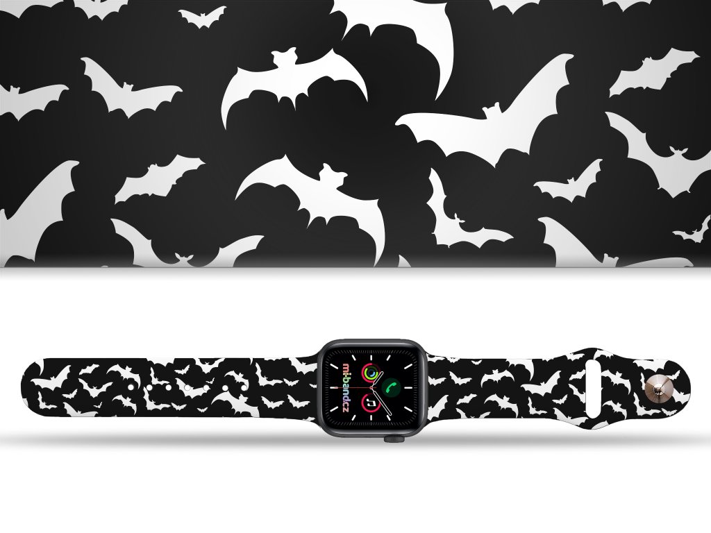 Potištěný náhradní řemínek pro Apple Watch s designem Netopýři. Netopýři útočí, pozor, ať se vám nezamotají do vlasů.
