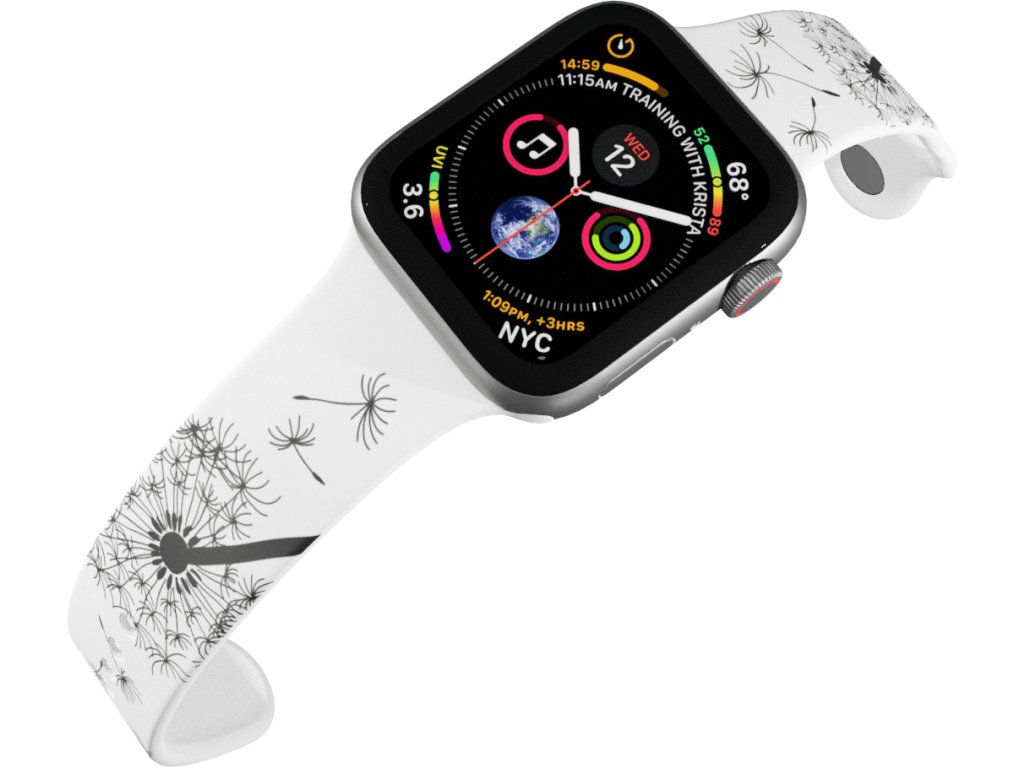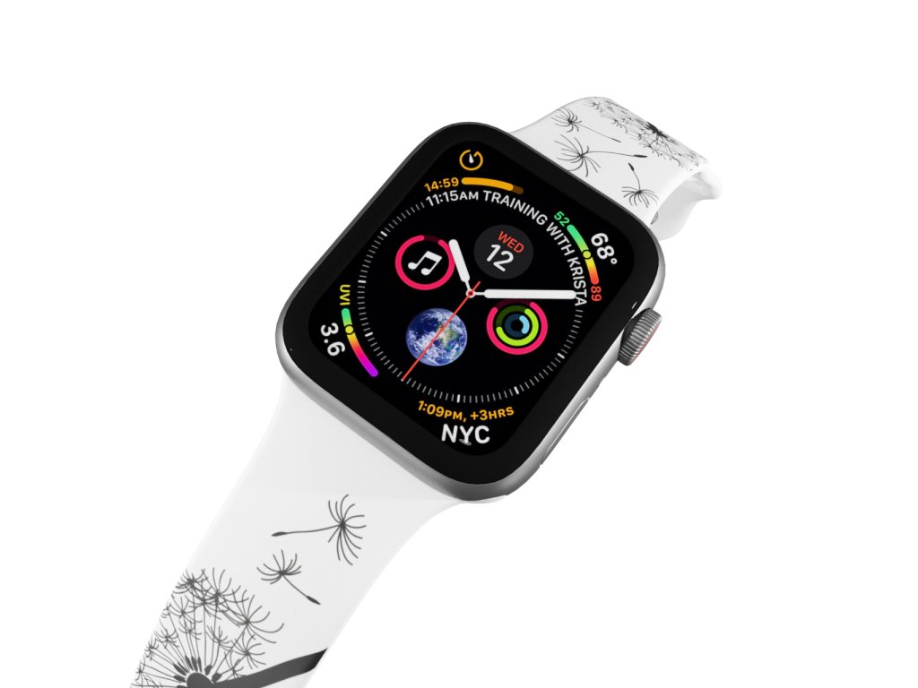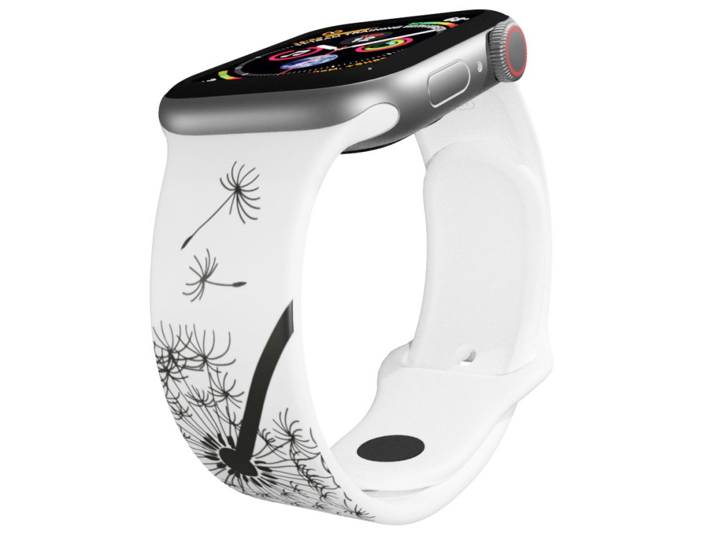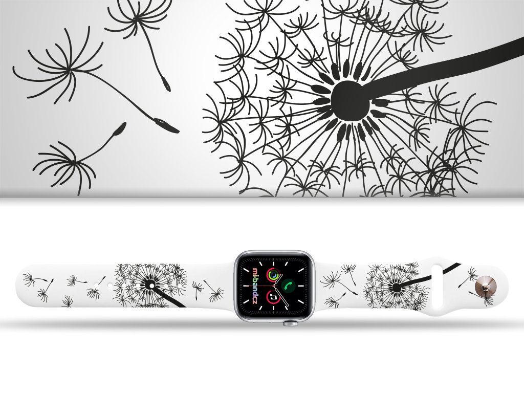 Potištěný náhradní řemínek pro Apple Watch s designem Pampeliška 2. Jaké triky a nápady vždycky dostaneš na podzim, když vidíš takto odrostlou pampelišku? Nejjednodušší je prostě fouknout. Lehkost na náramku pro Apple Watch.