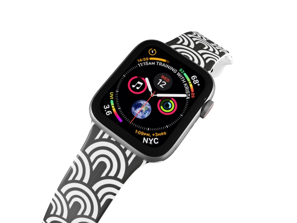 Potištěný náhradní řemínek pro Apple Watch s designem Půkroužky. Jak dokáže jednoduchý tvar zaměstnat představivost člověka. Podívej se na tento náramek pro Apple Watch. Co vidíš? Střechu? Vlny?