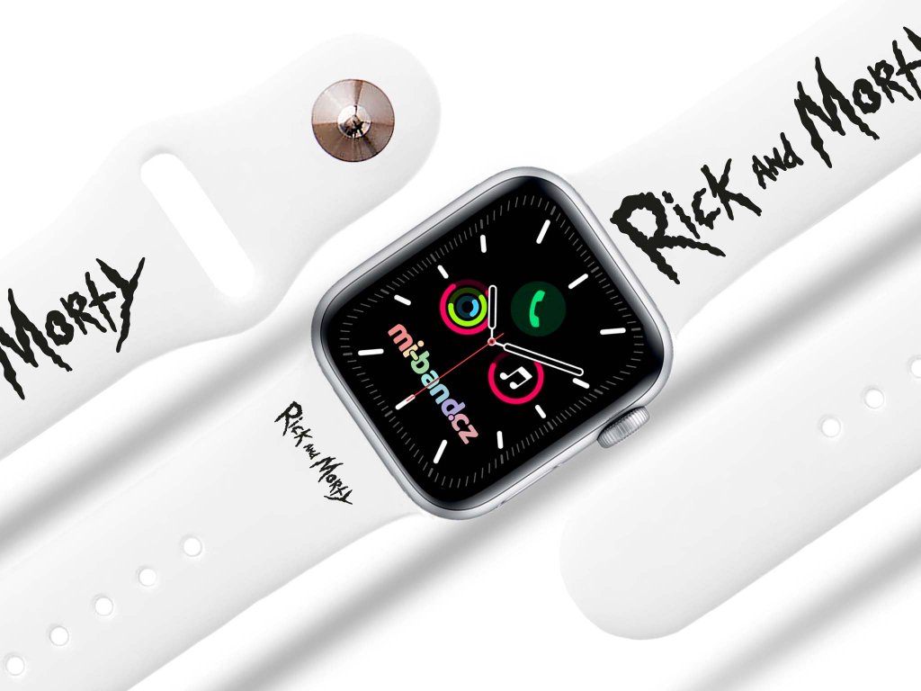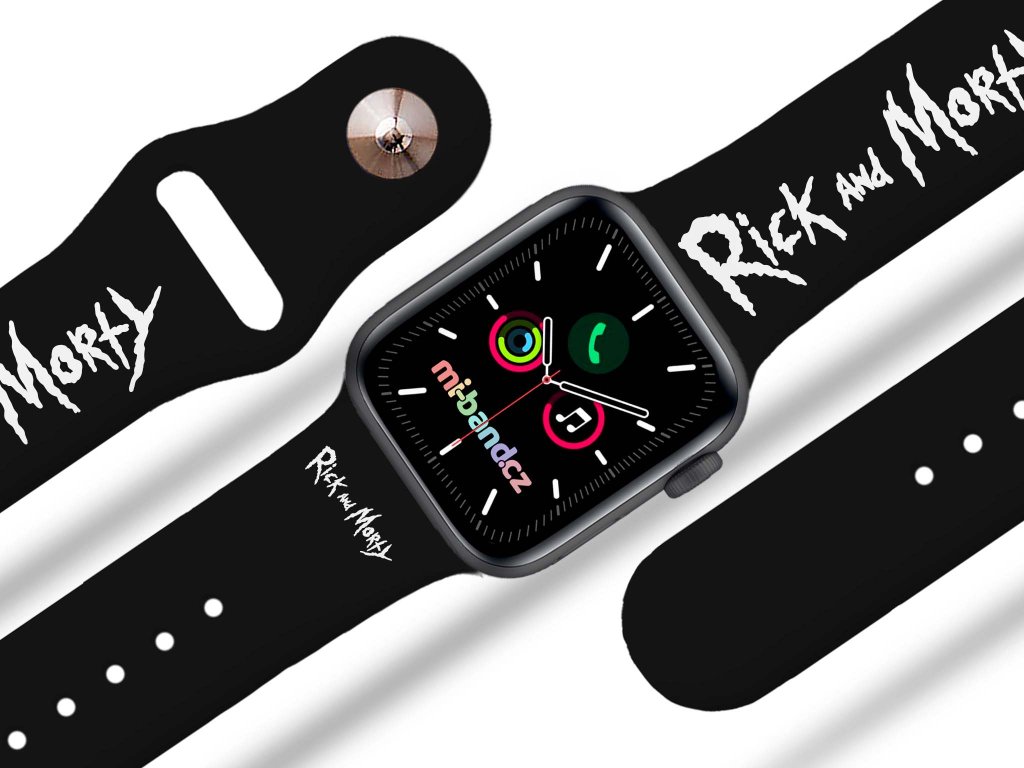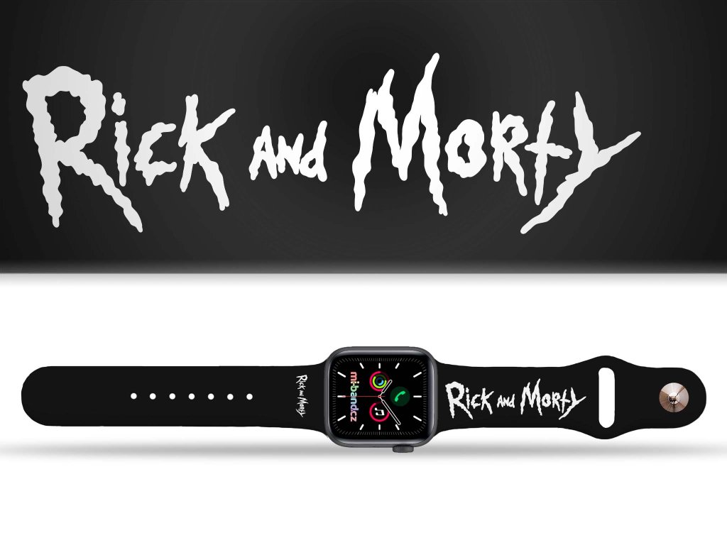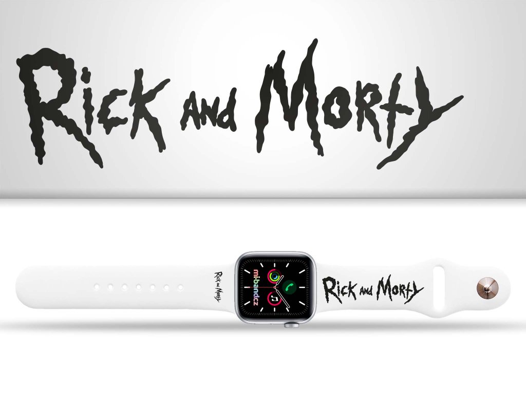 Potištěný náhradní řemínek pro Apple Watch s designem Rick and Morty - Logo. Pásek s potiskem potiskem nápisu Rick and Morty. Prožijte dobrodružství mezi paralelními světy a dimenzemi.