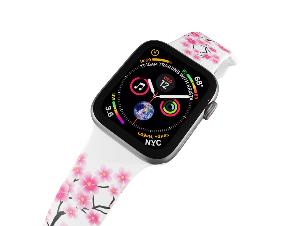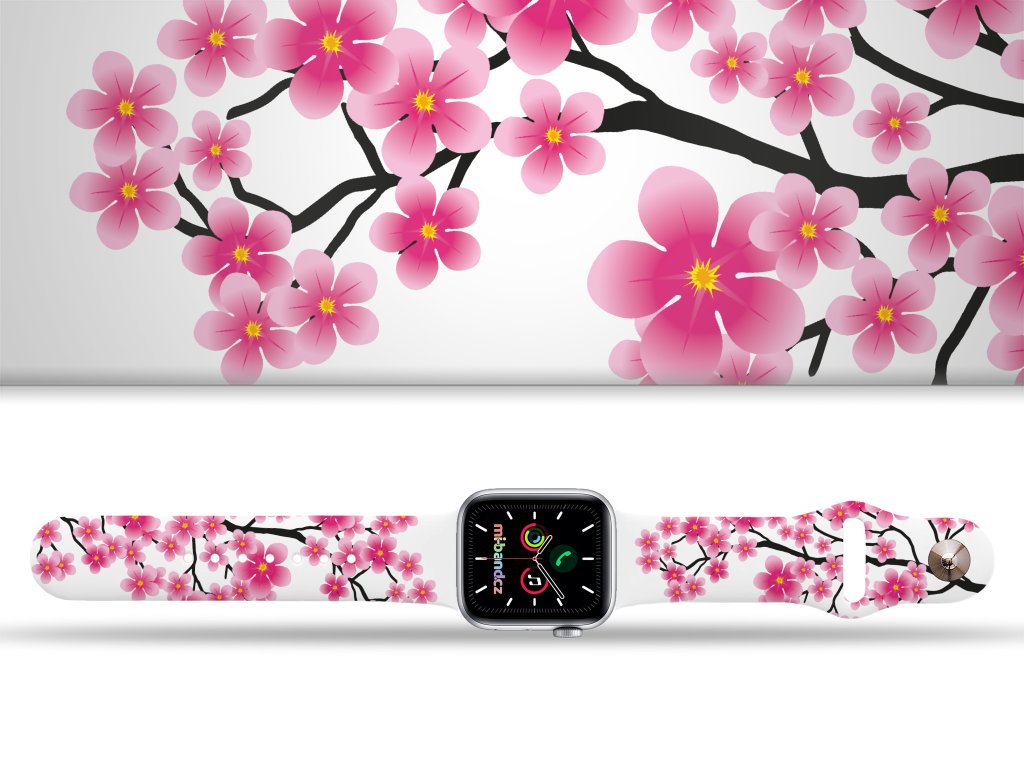 Potištěný náhradní řemínek pro Apple Watch s designem Sakura 2. Jak kvete legendární japonský strom? No tak rozhodně to nebude jen tak ledajaká podívaná. Náramek pro Apple Watch ozdobený nezapomenutelnými kvítky jara.
