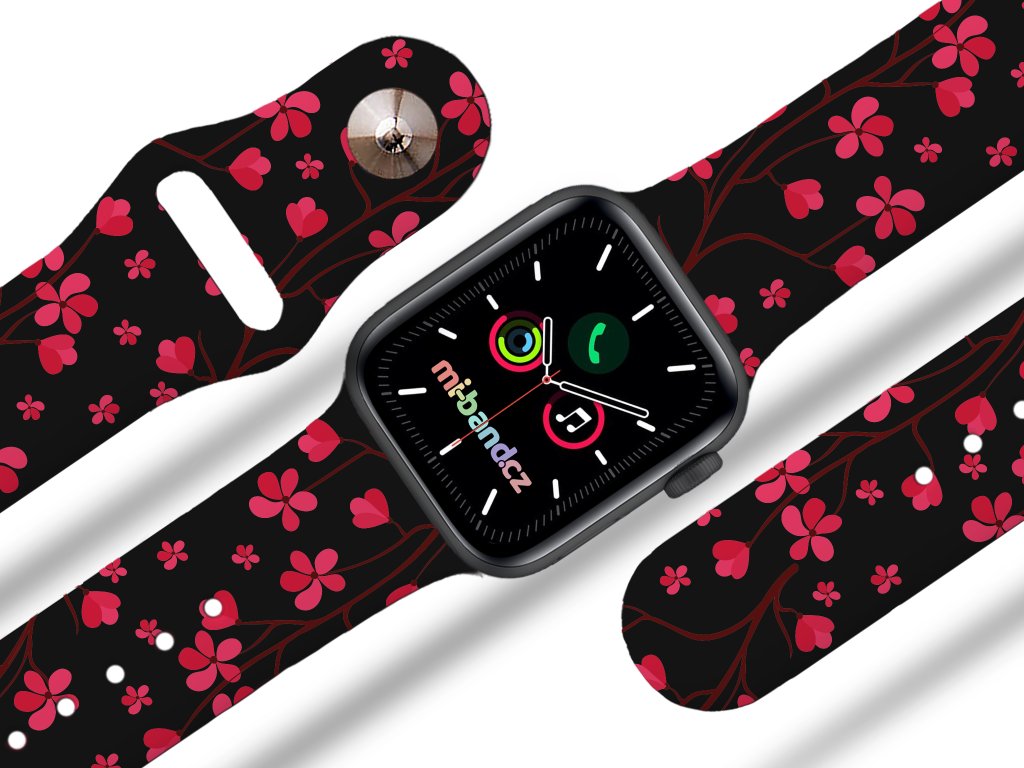 Potištěný náhradní řemínek pro Apple Watch s designem Sakura. Japonská třešeň inspiruje už po generace. Jemné růžové květy a nerovnoměrně propletené větvičky rozhodně vyniknou i na náramku pro Apple Watch, co říkáš?