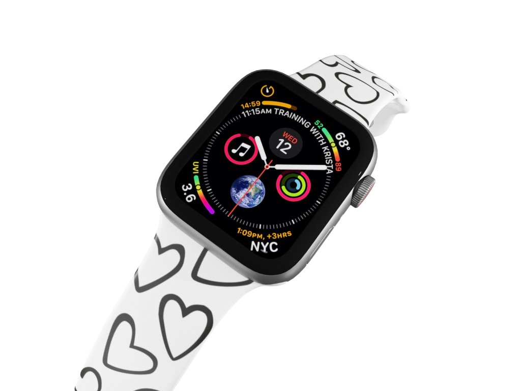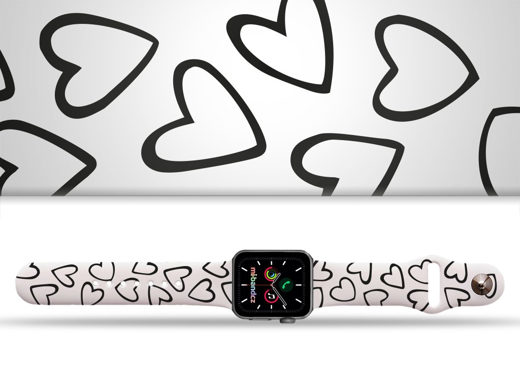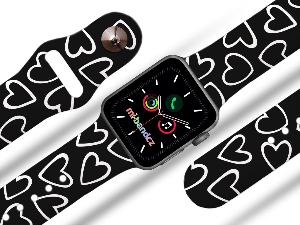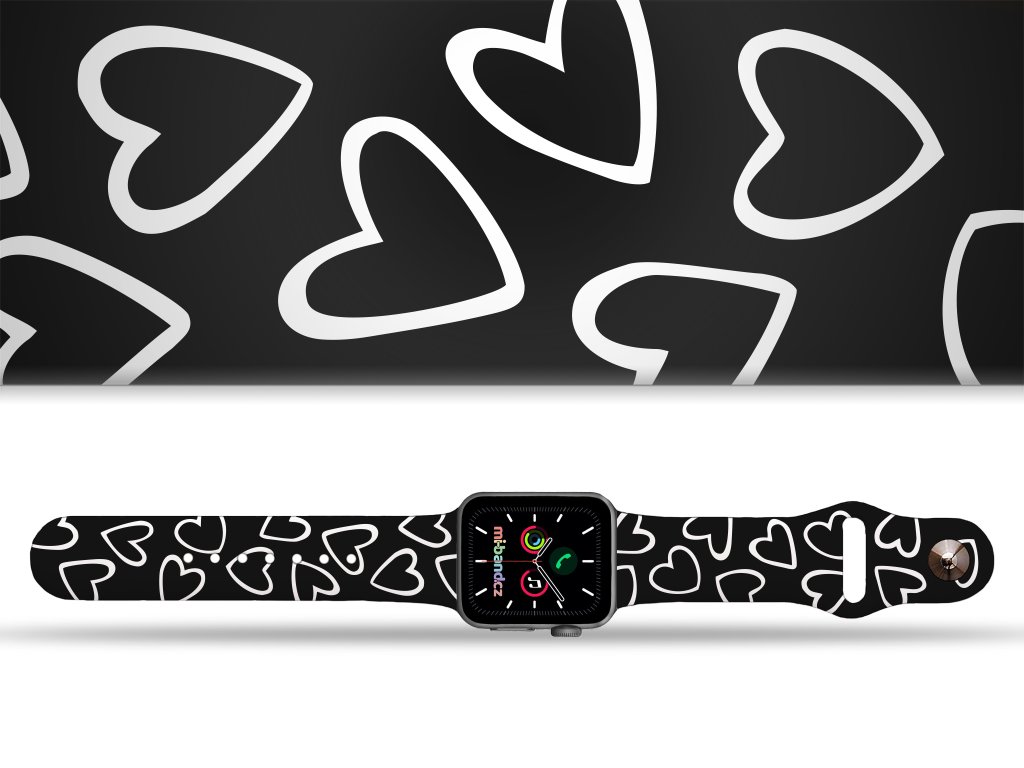 Potištěný náhradní řemínek pro Apple Watch s designem Srdce černobílá. Srdíčka jako symbol lásky na vašem pásku k hodinkám.