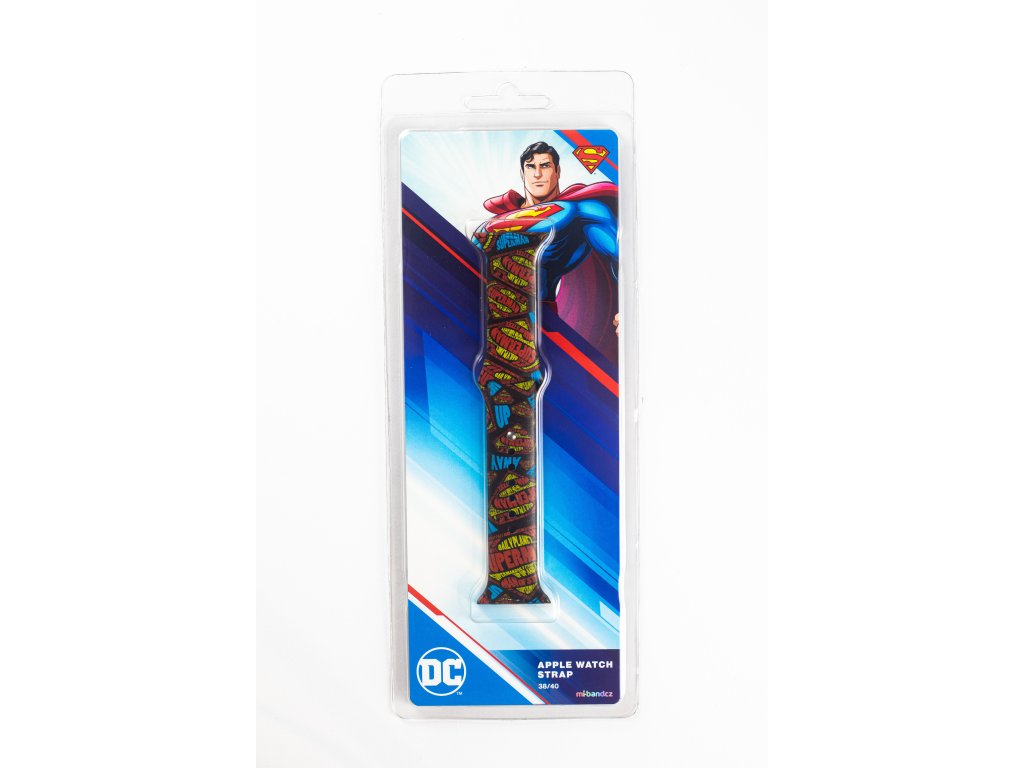 Potištěný náhradní řemínek pro Apple Watch s designem Superman - Nápisy. Pásek s barevným potiskem s DC Comics Superman. Barevné nápisy jako celopotisk pro pásek na vaše chytré hodinky. Buďte originální a nebojte se odvázat.