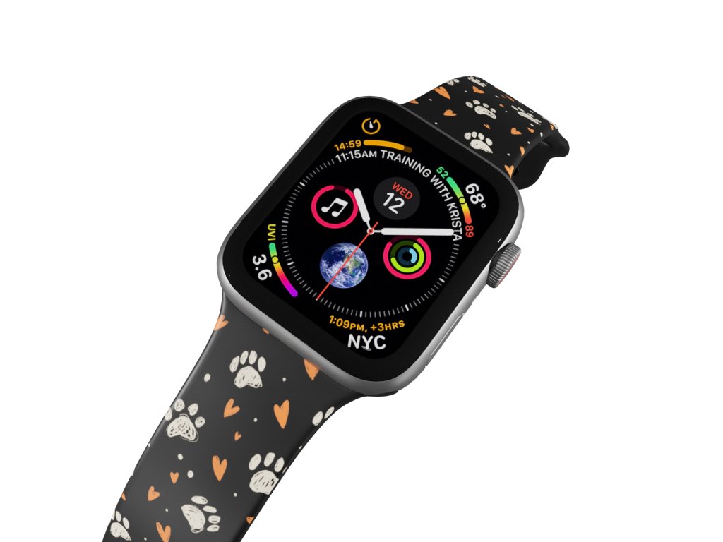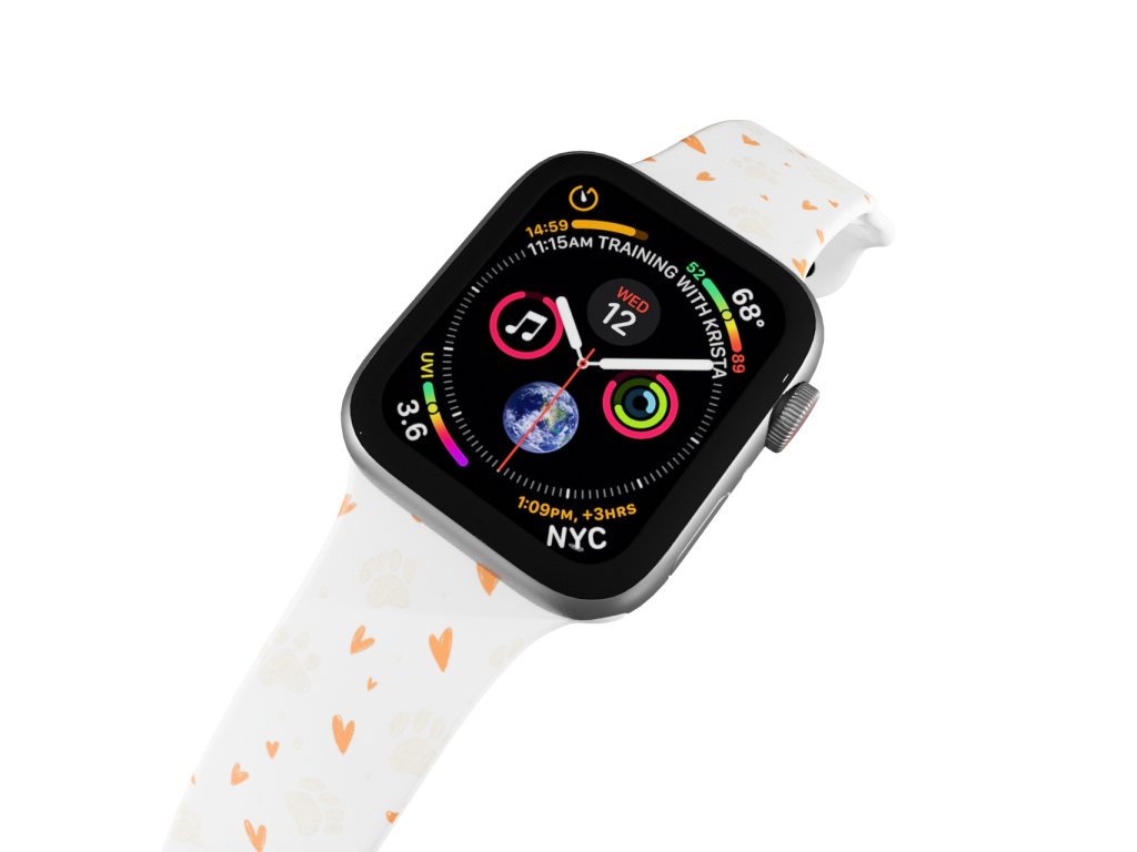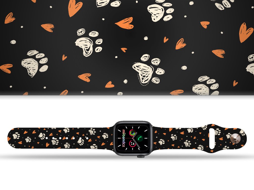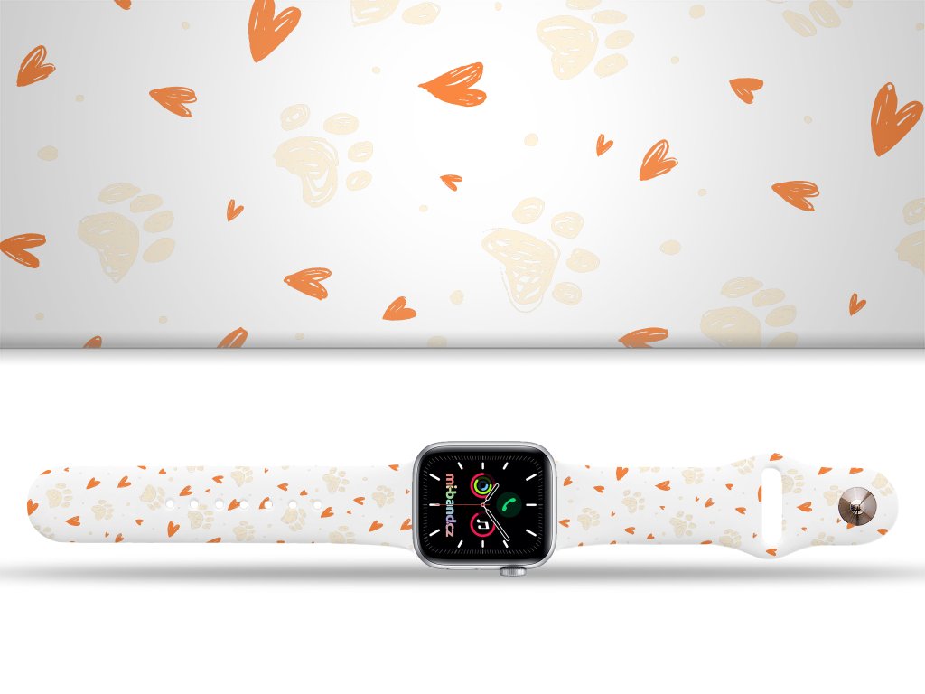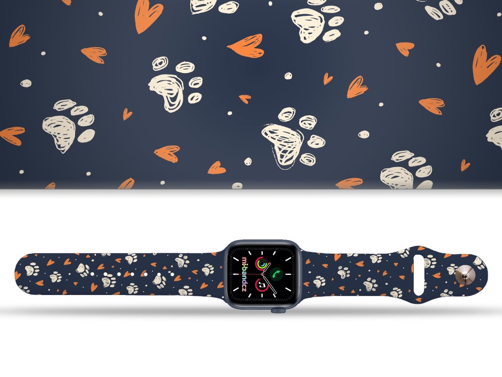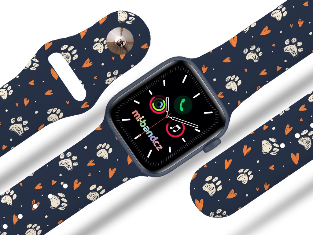 Potištěný náhradní řemínek pro Apple Watch s designem Tlapičky se srdíčky. Psí láska je ta nejvěrnější a nejčistší, kterou můžeš na světě potkat.
