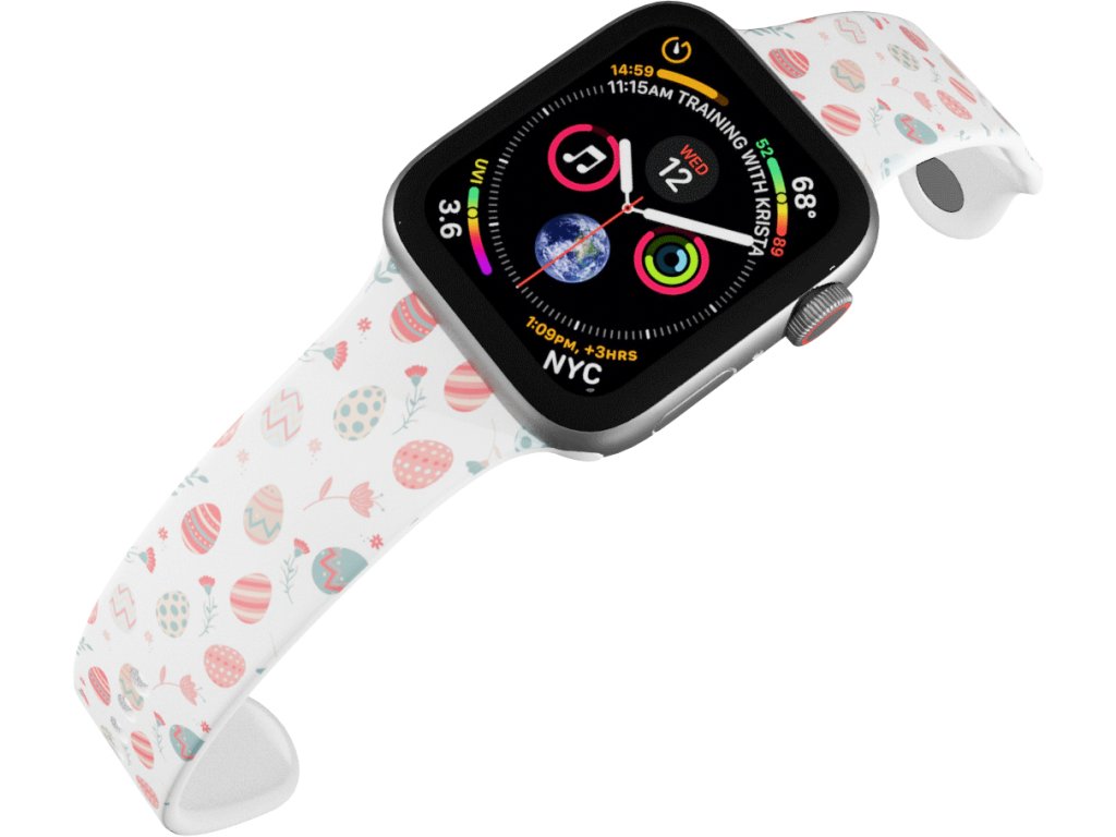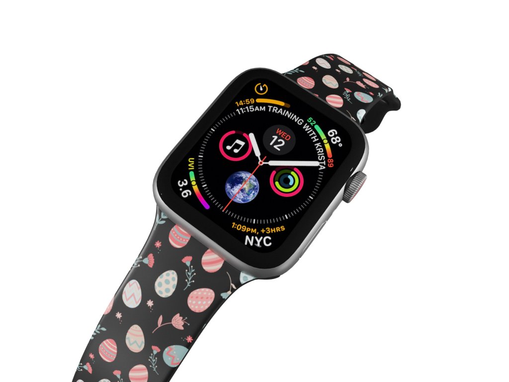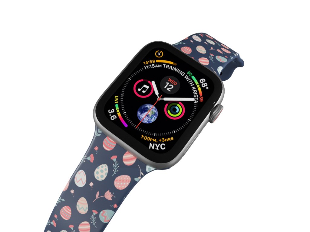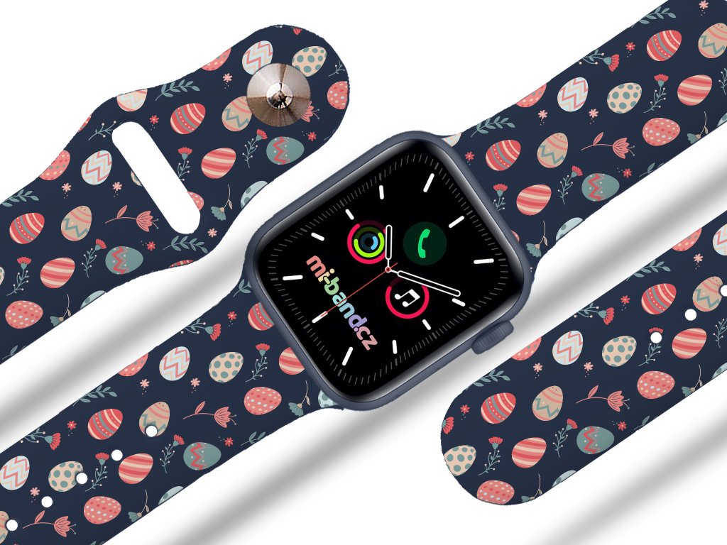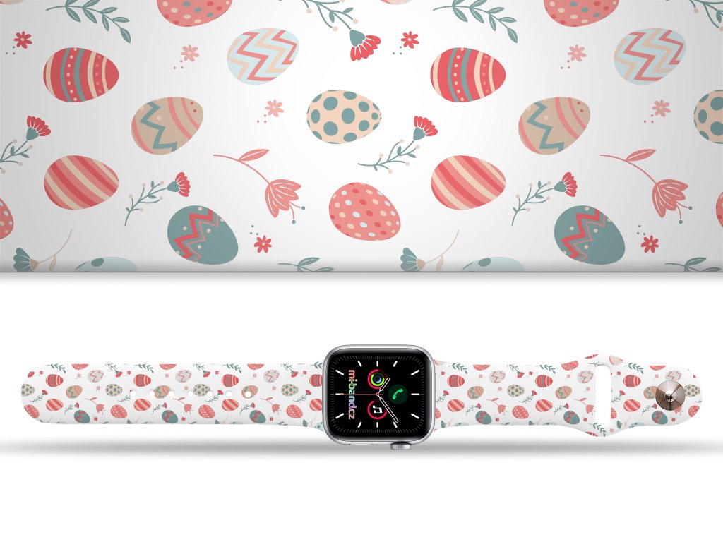 Potištěný náhradní řemínek pro Apple Watch s designem Vajíčka a kytičky. Tak zase po roce, přišly Velikonoce. Kraslice zdobí každou domácnost a co k nim? Ideálně nějaký ten barevný kvítek. Zkus se inspirovat náramkem pro Apple Watch.