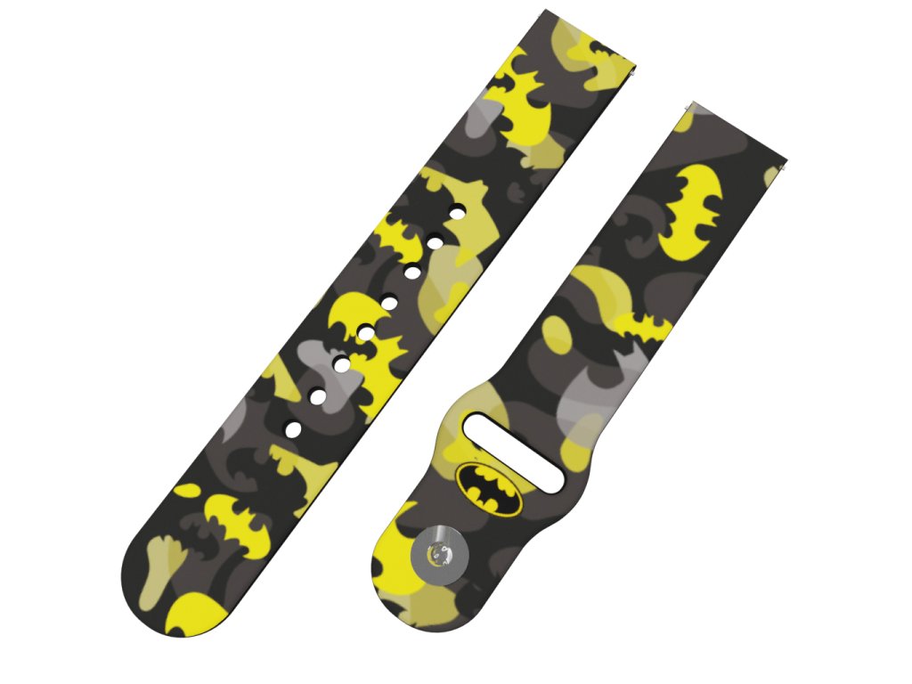 Černý náhradní řemínek se spoustou žlutých a černých symbolů Batmana. Dokážete spočítat, kolik symbolů Batmana na pásku pro vaše chytré hodinky najdete? Naskočte na vlnu komiksového hrdiny DC Comics z temných stínů samotného Gotham City.