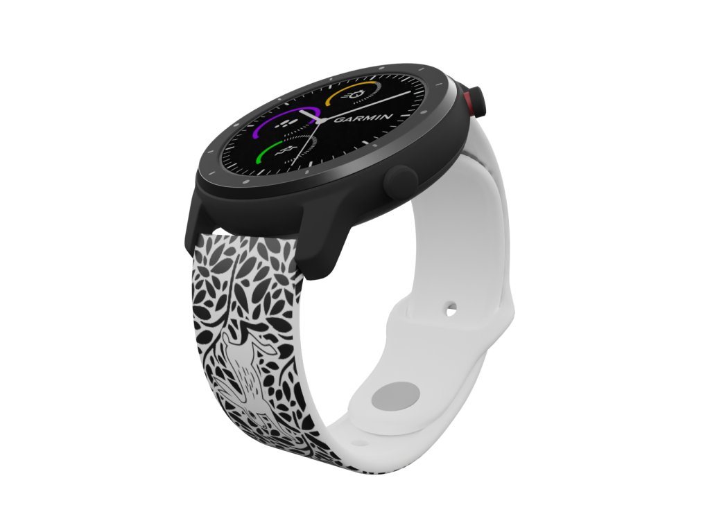 Bílý náhradní řemínek pro chytré hodinky s potiskem "Běží liška k táboru" bude těšit každého, kdo miluje přírodu a nemá rád lišky, protože má na sobě zajíce. :D