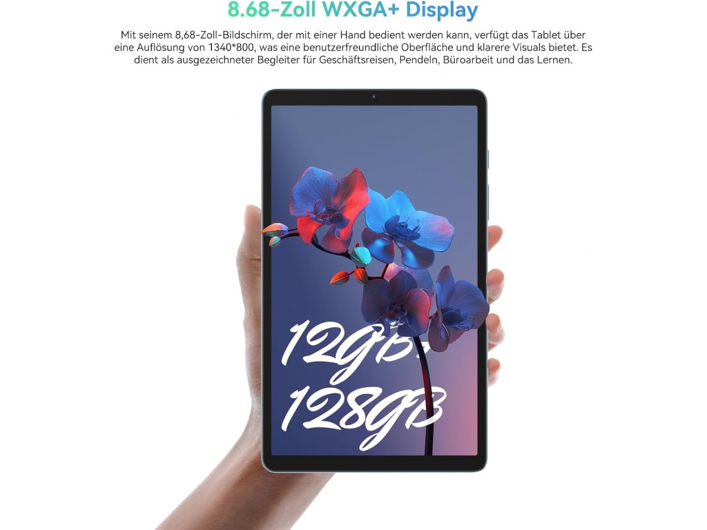- 8,68" displej + Dual Box reproduktory: tablet Blackview Tab60 používá displej 8,68" s rozlišením WXGA+ HD, v kombinaci s reproduktory Widevine L1a Smart-K Dual BOX a nabízí tak působivý audiovizuální zážitek. Tablet Tab60 nabízí perfektní rovnováhu mezi velikostí a přenosností, s rozměry 211,7 × 124,4 × 8,4 mm a hmotností pouhých 338 g jej můžete bez problémů držet a vzít s sebou, takže zábava je vždy na dosah.