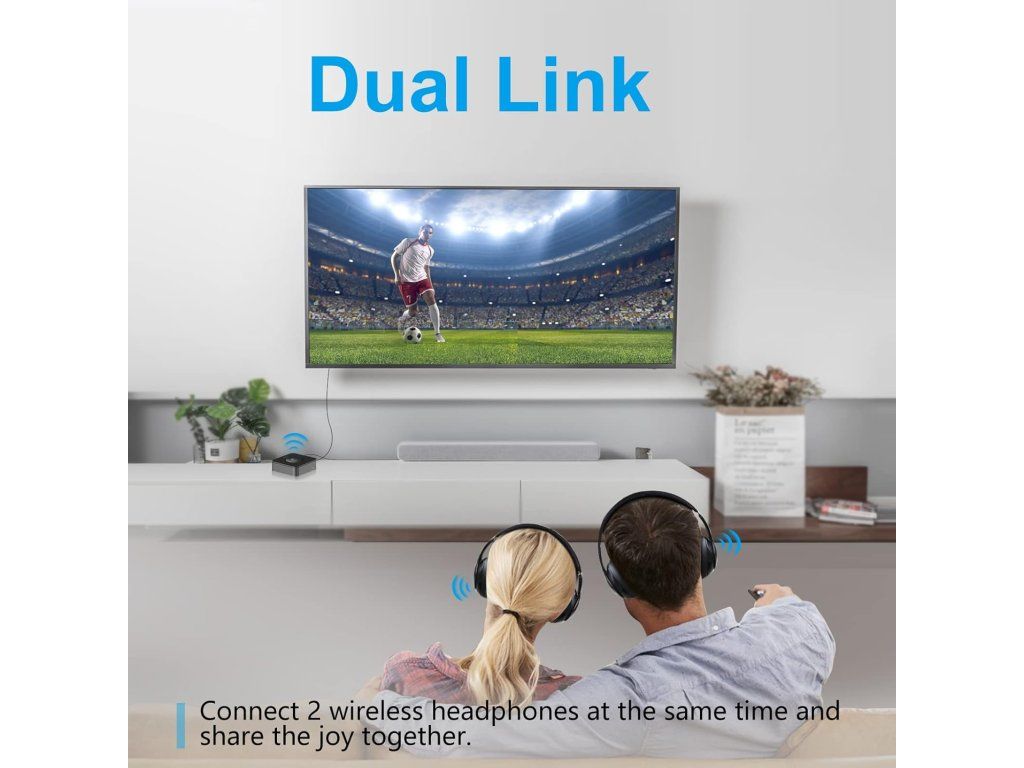 - TX režim: TV → Bluetooth sluchátka / reproduktory