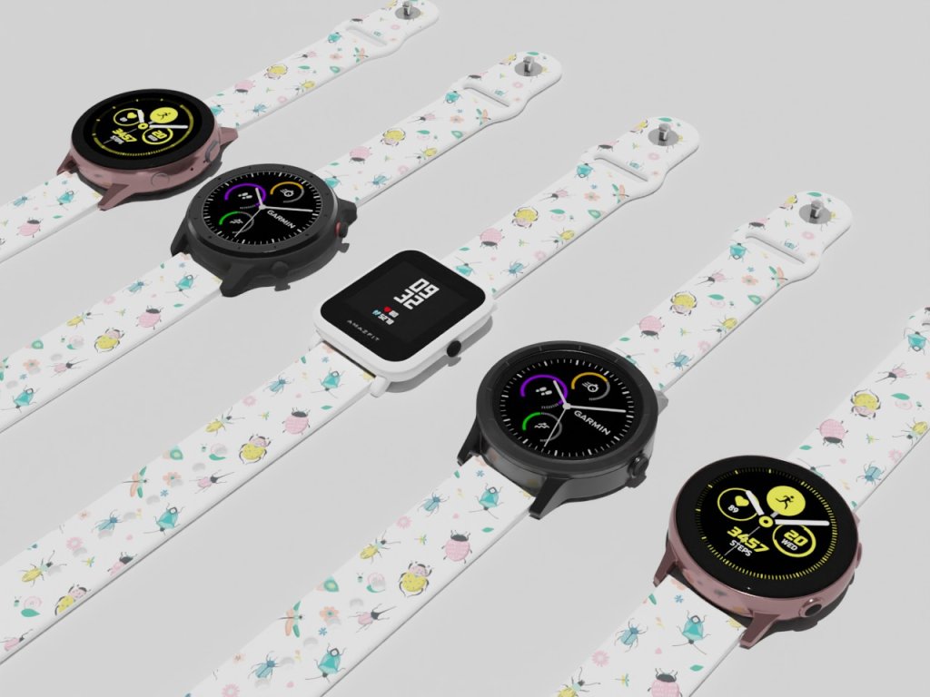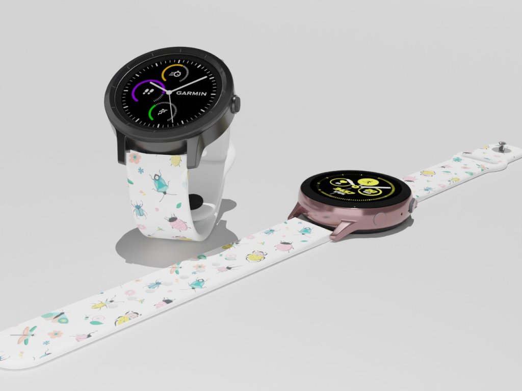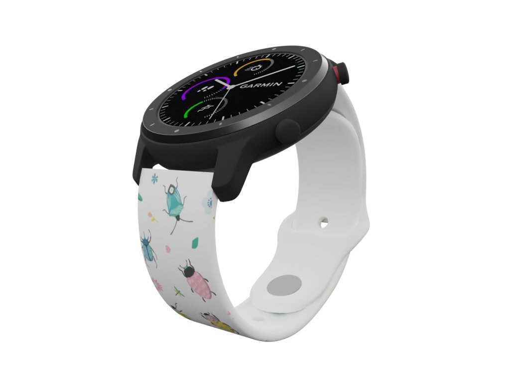 Bílý náhradní řemínek s potiskem lučního hmyzu v pastelových barvách