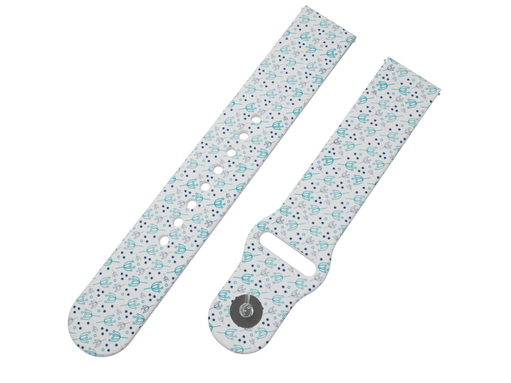 Potištěný univerzální řemínek naší vlastní výroby ve velikosti 22 mm s designem "BRŠLICE MODRÁ" pro obvod zápěstí 15 - 23 cm.