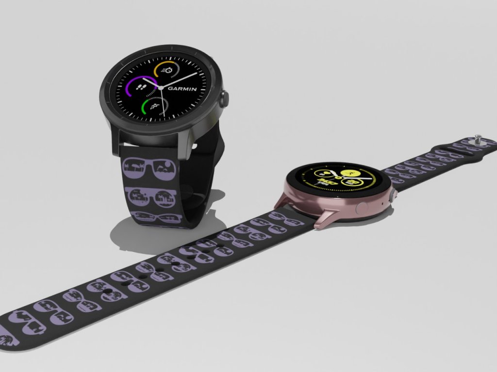 Černý náhradní řemínek s potiskem fialových slunečních brýlí ve kterých ještě zůstaly odlesky letní dovolené. Potisk s motivem brýlí dodává hodinkám jedinečný a originální vzhled.