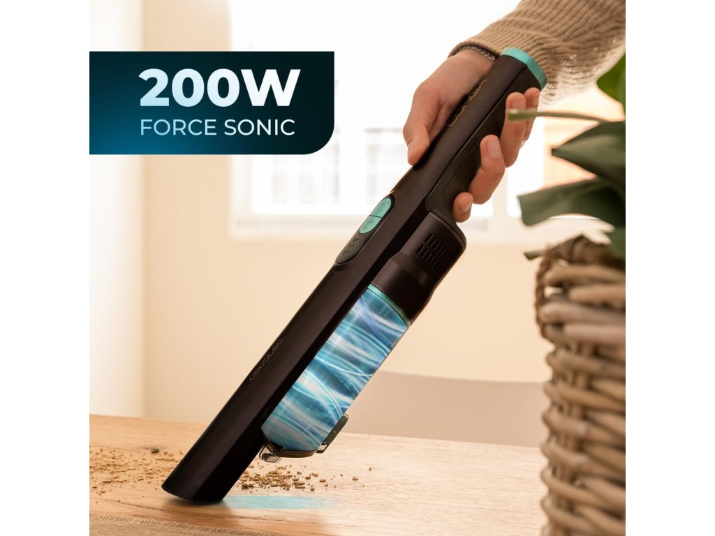 - Ultralehký ruční vysavač, který umožňuje agilní a přesné čištění. ForceSonic: maximální výkon 200 W a 20 kPa, který bez námahy nasává všechny druhy nečistot.