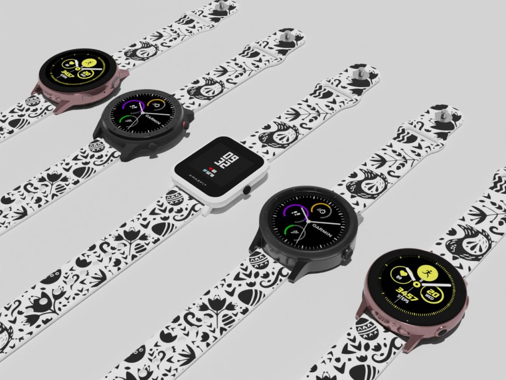 Bílý náhradní řemínek s oblíbeným černobílým folklórním designem.