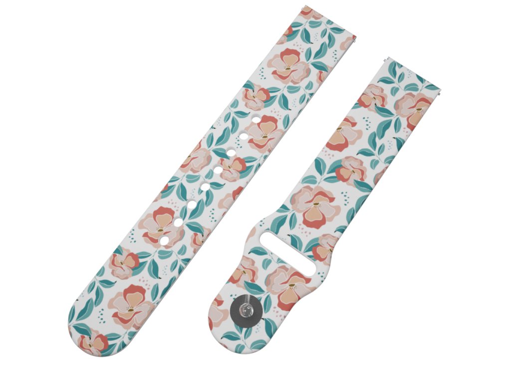 Bílý náhradní řemínek pro chytré hodinky s barevným potiskem červené květiny. Nechte se omámit jejich vůní. To pravé pro milovníky květin. Design s červenou květinou dodá vašim hodinkám originální a elegantní vzhled.