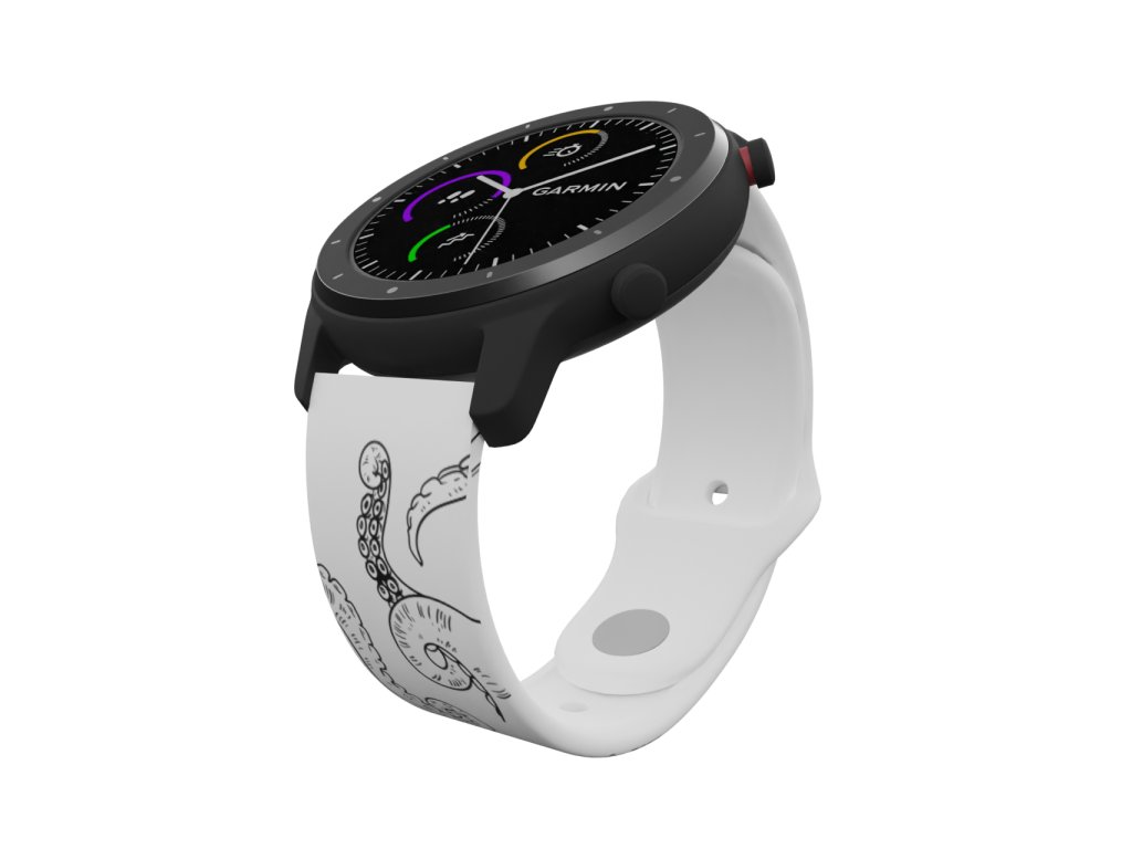 Bílý náhradní řemínek pro chytré hodinky s potiskem černých chapadel chobotnice.