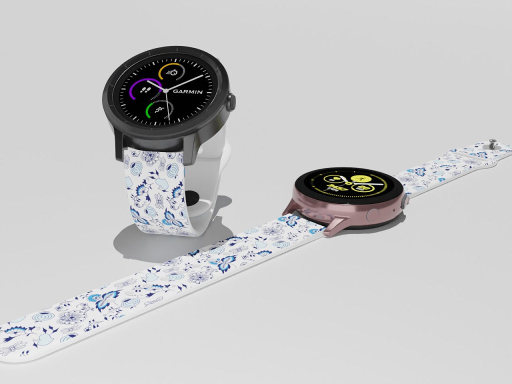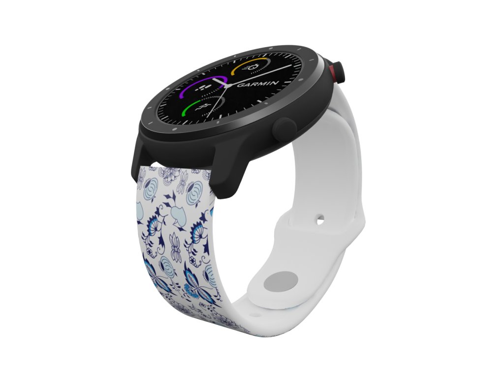 Bílý náhradní řemínek pro chytré hodinky s barevným potiskem cibulák.