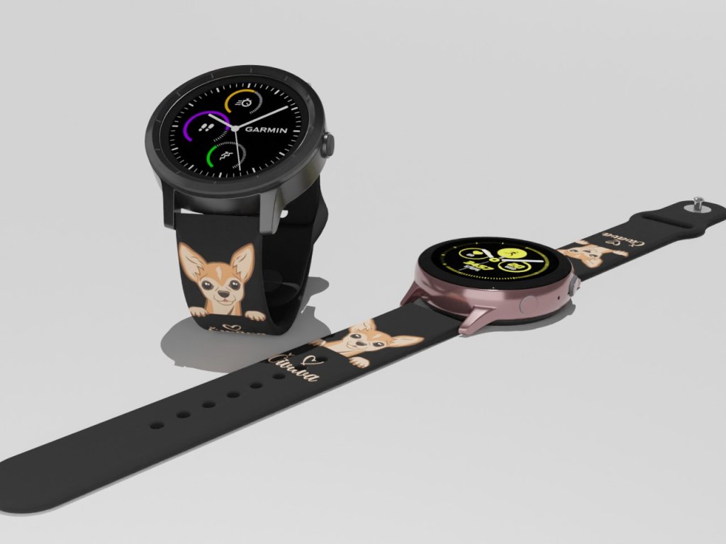 Černý náhradní řemínek pro vaše chytré hodinky s potiskem čivavy je ideální volba pro všechny milovníky