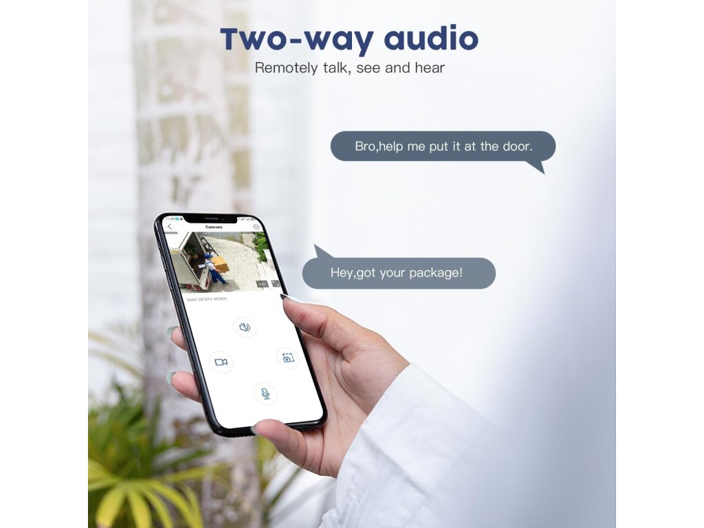 - Dvoucestné audio a vodotěsnost IP66. Tato solární WLAN kamera má reproduktory a mikrofony, se kterými můžete v reálném čase chatovat s návštěvníky nebo varovat vetřelce, když jste na cestách. IP66 je vodotěsný a vhodný pro různé oblasti od -0,0 °C do 50,0 °C. Na TF kartu může automaticky nahrávat videa s detekcí alarmu (až 128 GB, není součástí dodávky). Když je paměť TF karty plná, přepíše nejstarší záznam a znovu zahájí nahrávání.
