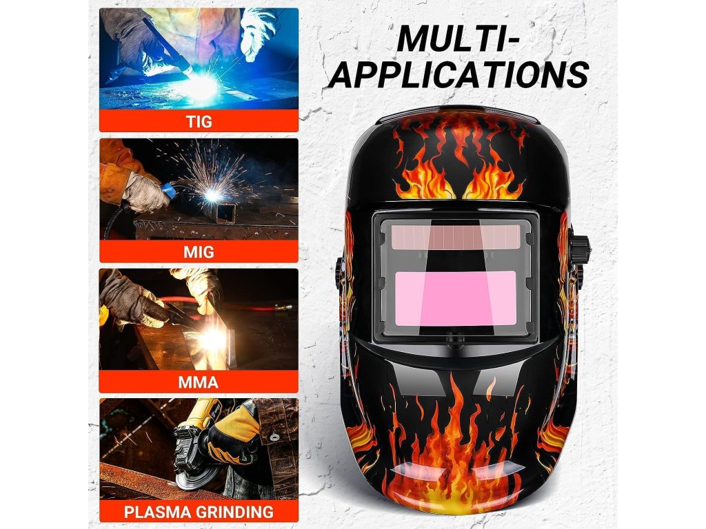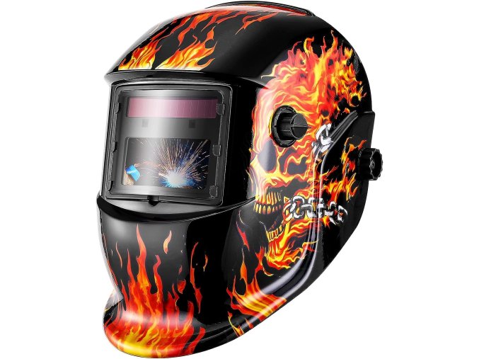 - Auto zatemnění: Tato automaticky zatemňující svářečská helma má jasné zorné pole 92 x 42 mm a dobu přepínání ze světlé na tmavou na 1/25 000 sekund