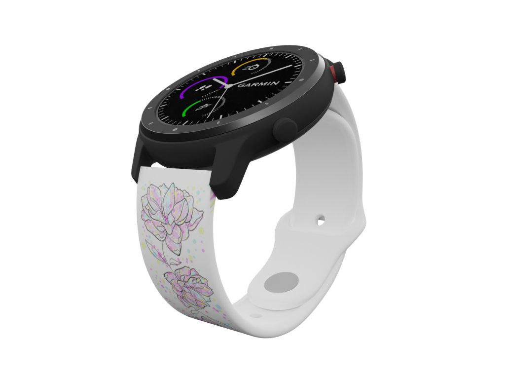 Bílý náhradní řemínek pro chytré hodinky s potiskem divoké růže.