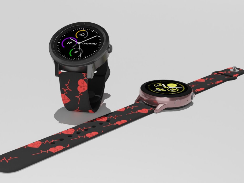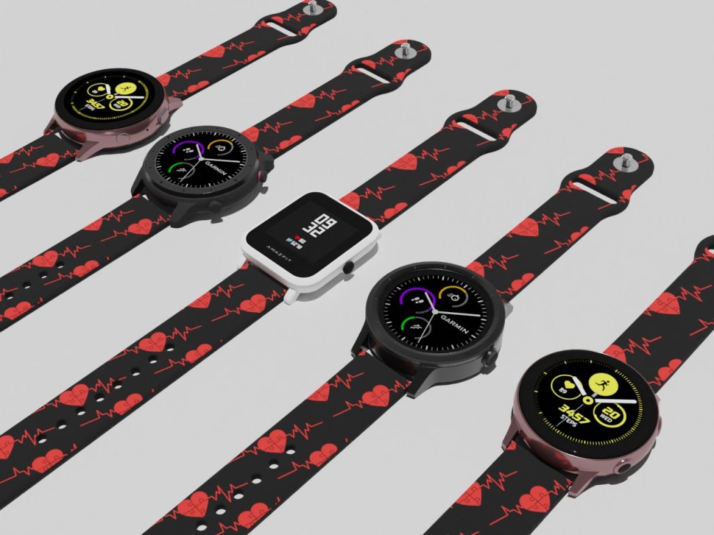 Černý náhradní řemínek s červenou grafikou. Zaposlouchejte se do beatů svého srdce