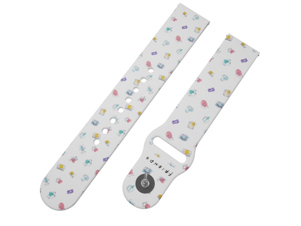Bílý náhradní řemínek pro chytré hodinky s potiskem prvků ze seriálu Přátelé.