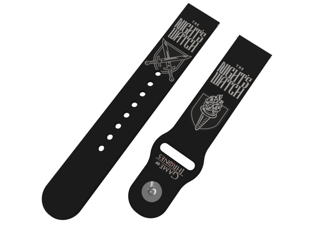 Černý náhradní řemínek s potiskem znaku noční hlídky z Game of Thrones. Noční hlídka má za úkol chránit Sedm království před hrozbou zimy a temnoty, které se vynořují za Zdí na severu. Členové Noční hlídky slouží do konce svých životů a přísahají, že se neožení, nezplodí potomka a nezískají žádný majetek.