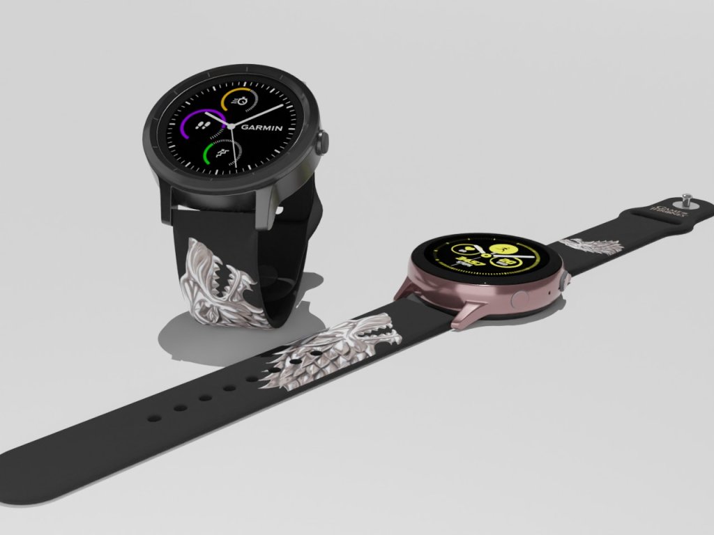 Černý náhradní řemínek s potiskem znaku vlka rodu Starků z Game of Thrones. Ideální pro fanoušky, kteří touží po originálním a stylovém doplňku.