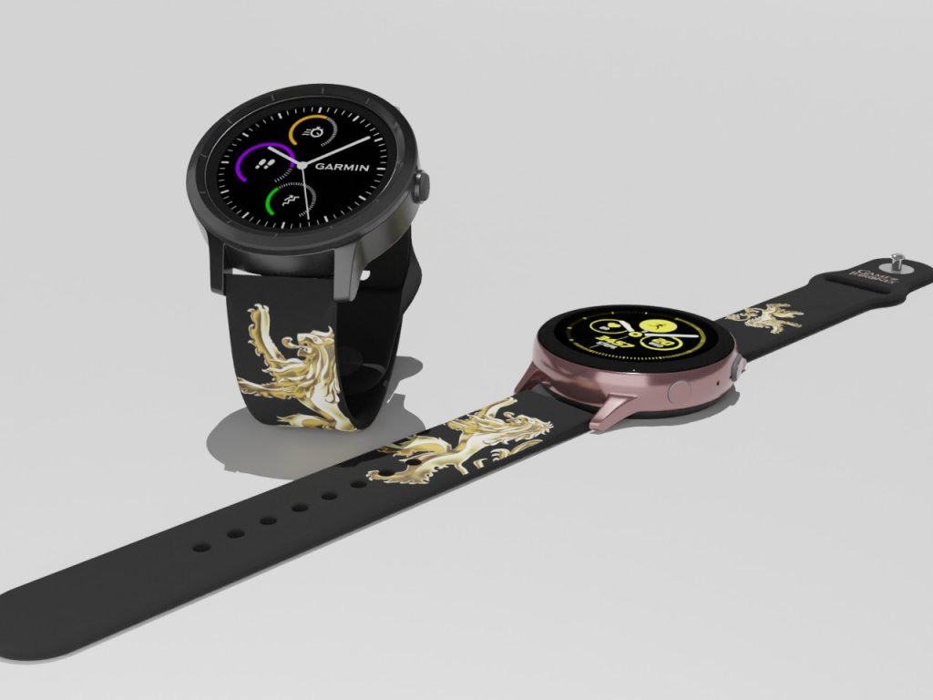 Černý náhradní řemínek s potiskem znaku zlatého lva rodu Lannisterů z Game of Thrones. Ideální pro fanoušky, kteří touží po originálním a stylovém doplňku.